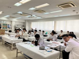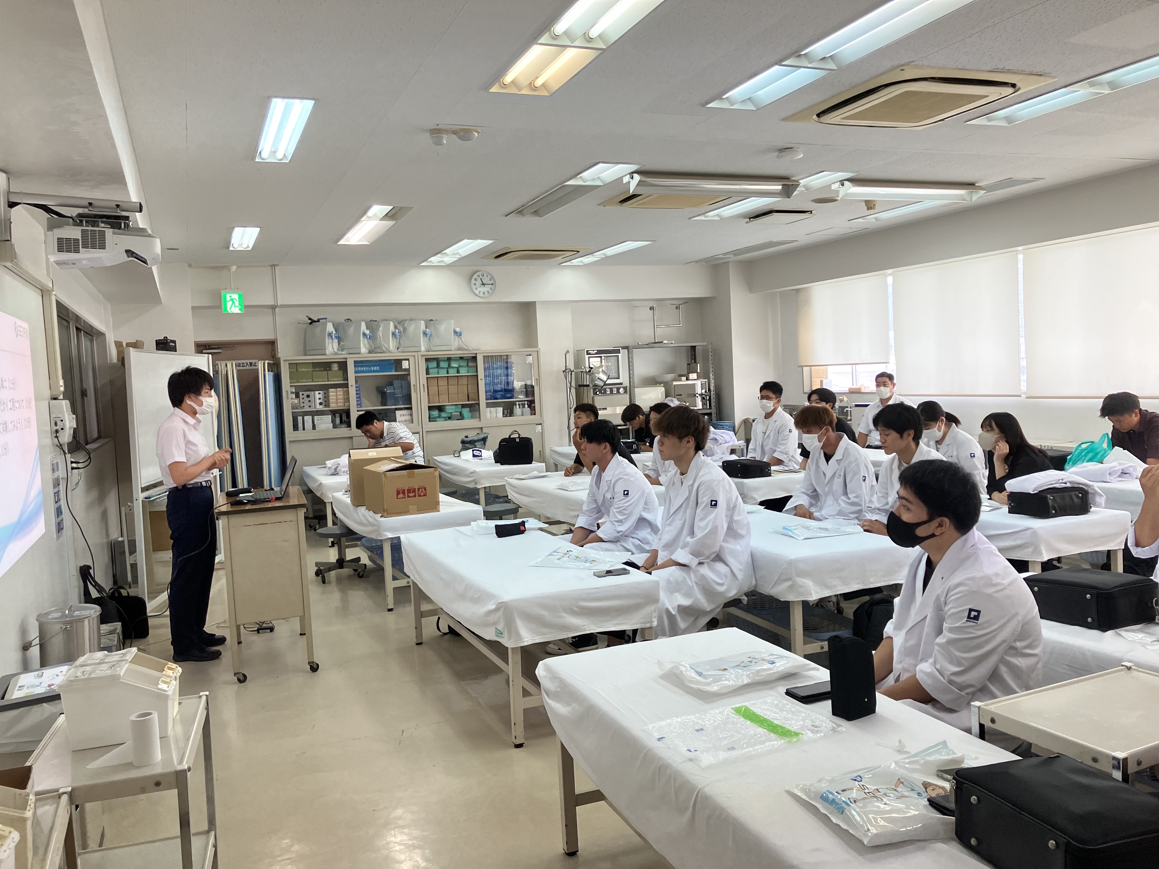 この日は株式会社セイリンさんにお越し頂き、鍼灸師が使う鍼がどのようにして作られているかや、そのような種類があるかを1年生に向けて話をして下さいました( ^ω^ )