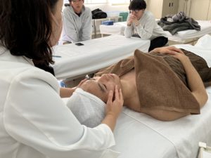 まずは簡単にフェイシャルのどんな手技を使うかなど、概論的なことをご教授頂きました。