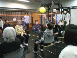 いつもの百歳体操に加えて、本日は室内でもできる「リハビリスポーツ」を行いました。