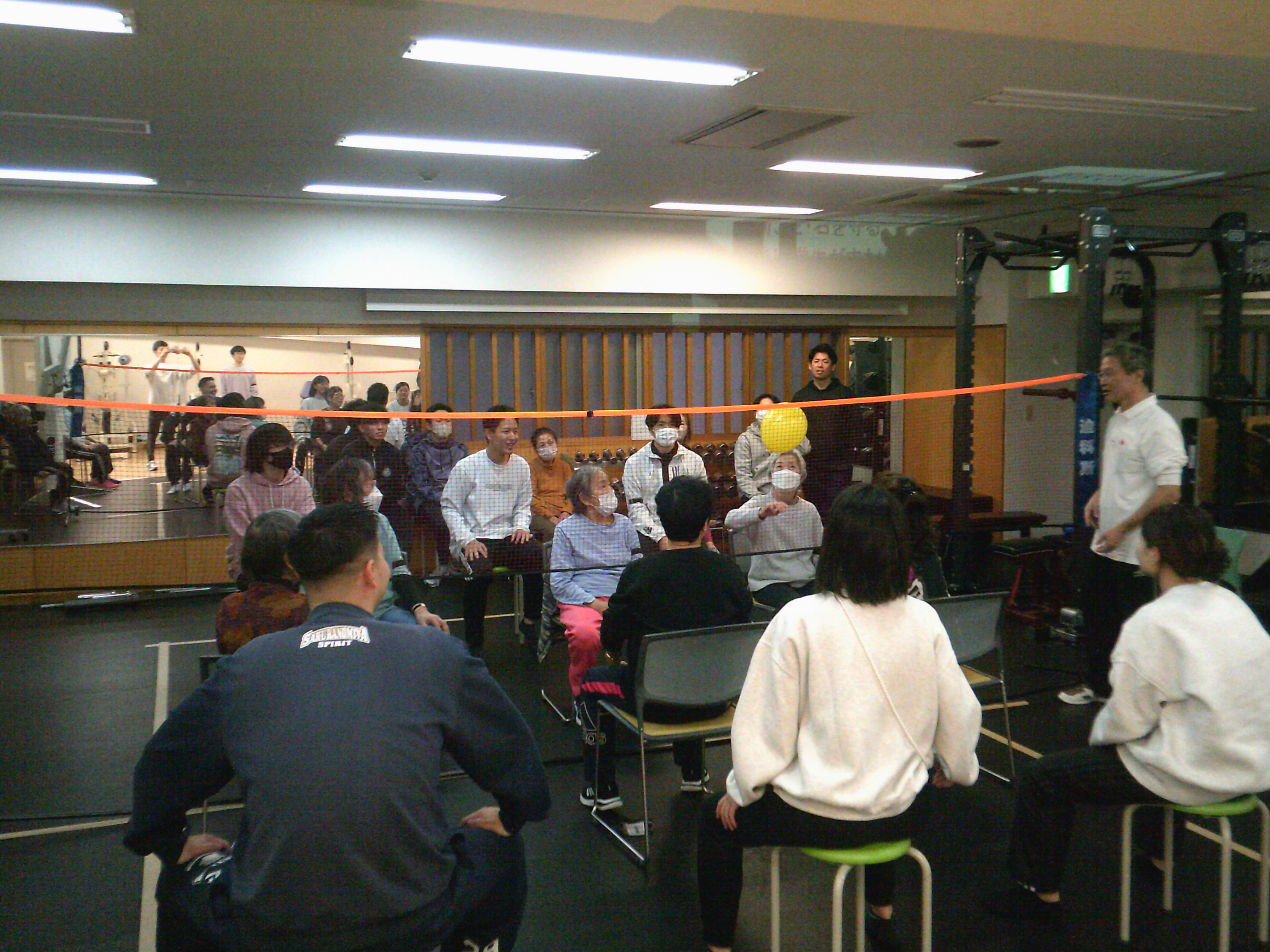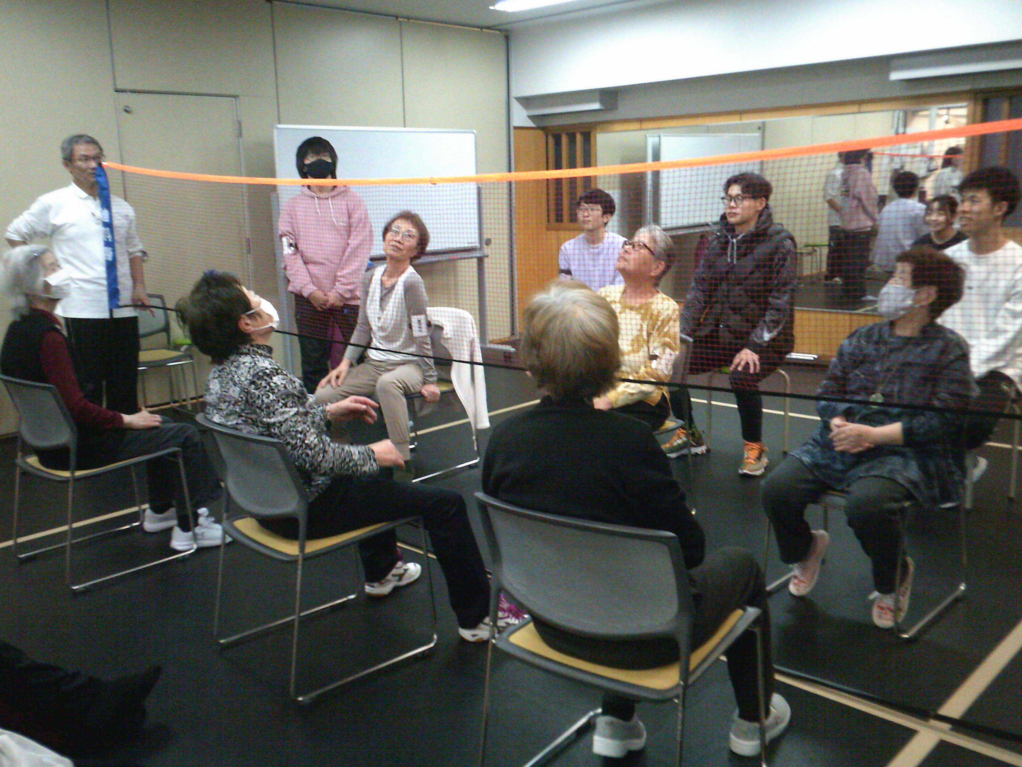 いつもの百歳体操に加えて、本日は室内でもできる「リハビリスポーツ」を行いました。