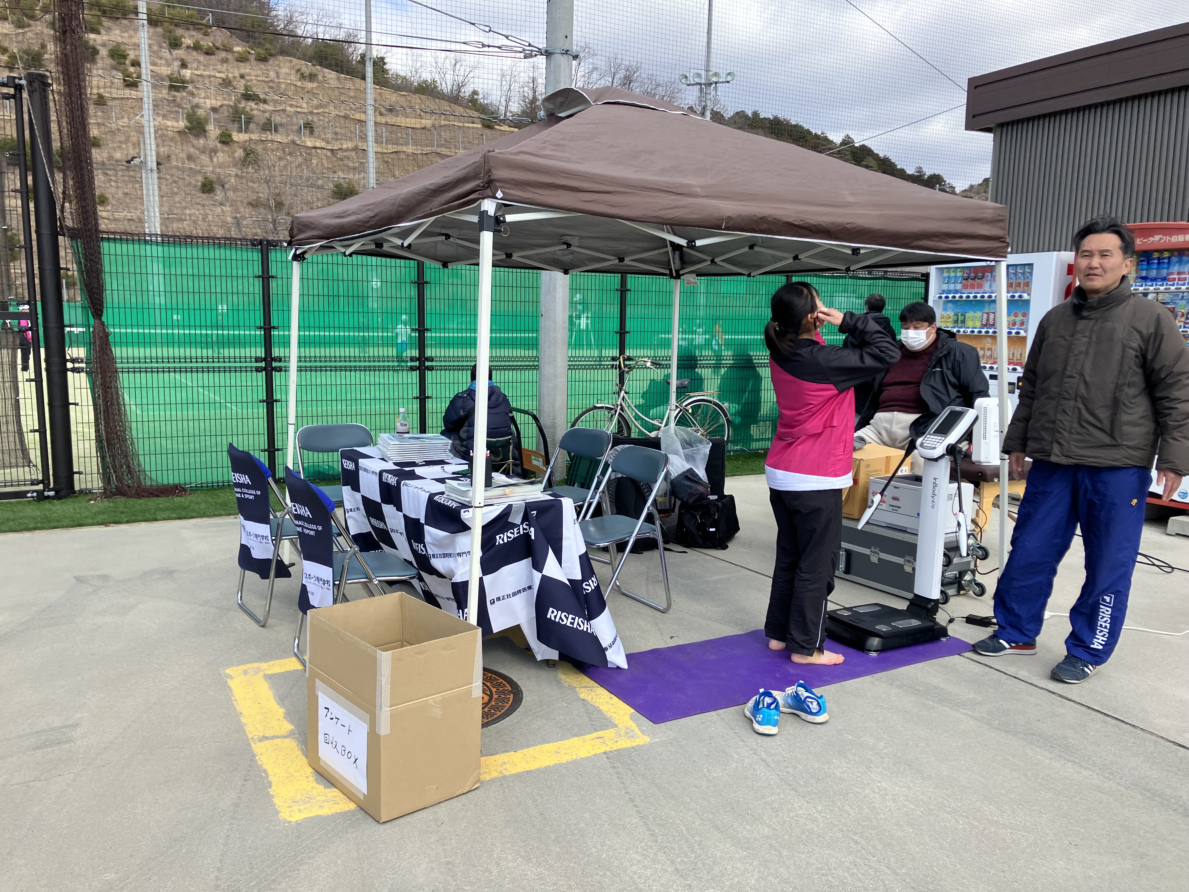ソフトテニスカップでは鍼灸治療の体験も行っていましたが、広報部の方はストレッチやインボディを使って参加者の状態を確認しておりました!
