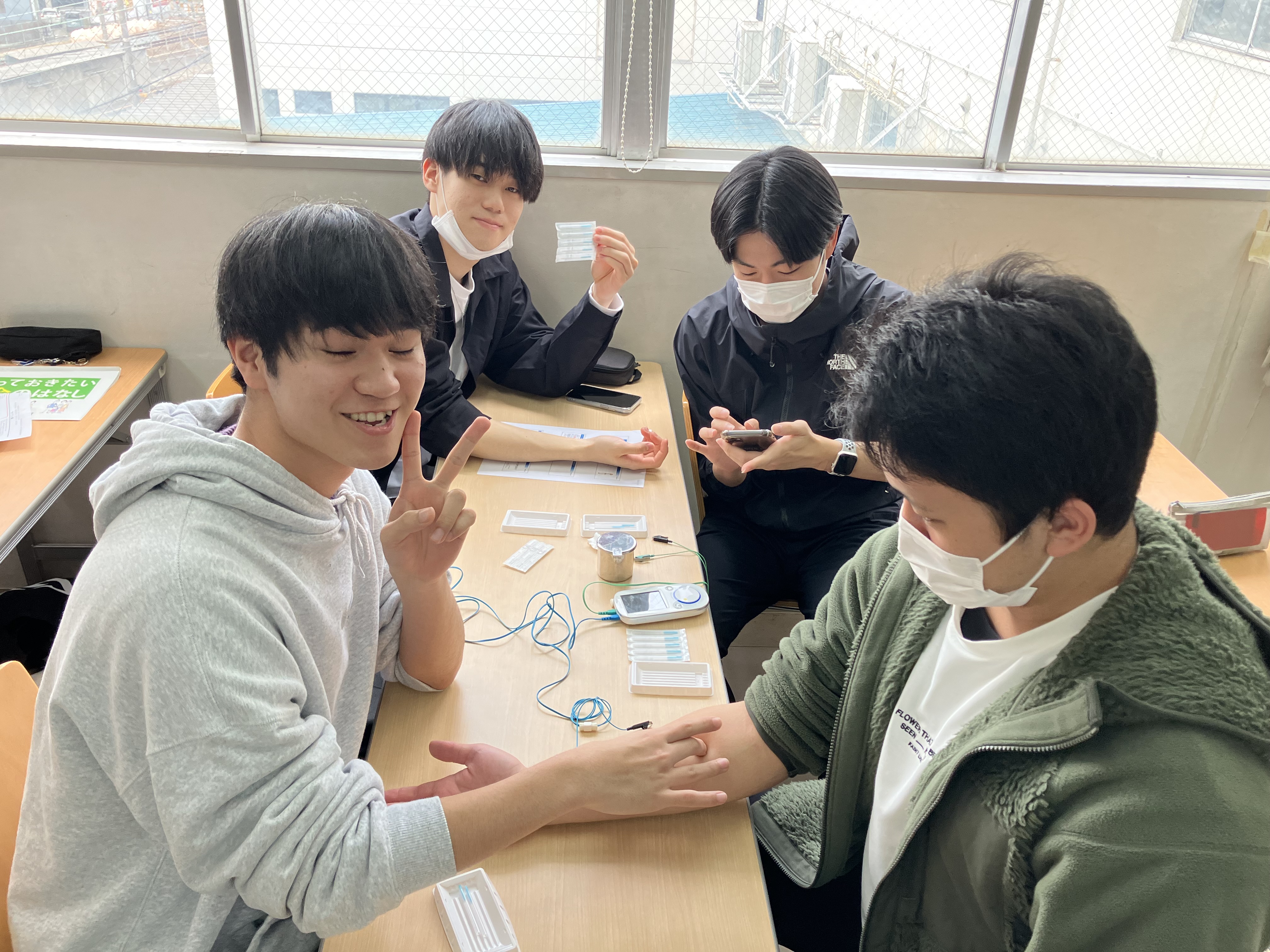 まだ1年生もお互いに鍼を刺すことは行っているものの、その鍼に電気を通すという経験はなかったのです・・・。