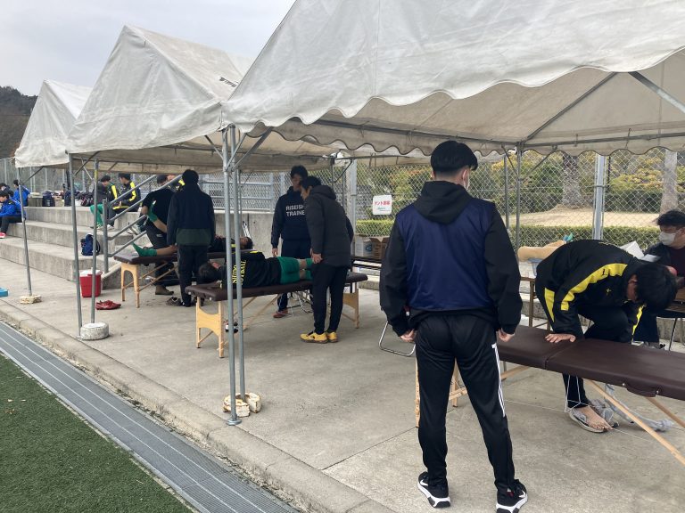 ブースにおいては痛みや足首の不安定さからテープングを行う選手たちもいました。