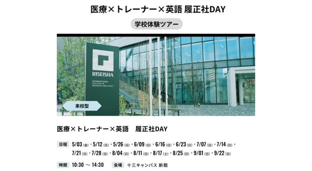 履正社は特に9月くらいまでは、ほぼ毎週に近い期間にオープンキャンパスを実施中!!