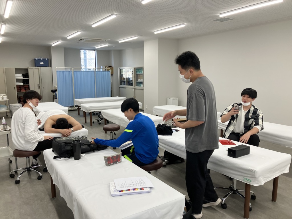 鍼の練習をするもの、治療を受けるもの、アスリハのメニューを考えるもの、試験の勉強をしているもの、のんびり過ごしているものなど・・・!