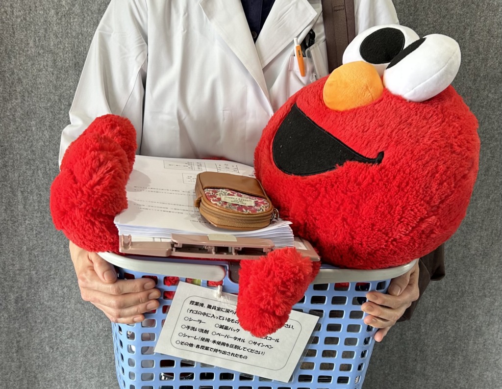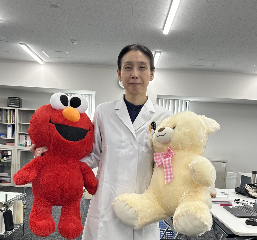 その中西先生が、今日、かわいい大きなぬいぐるみを抱えていました。