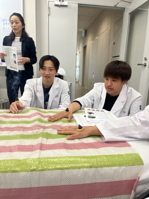 作ったもぐさは生姜を挟んだ「生姜灸」として
