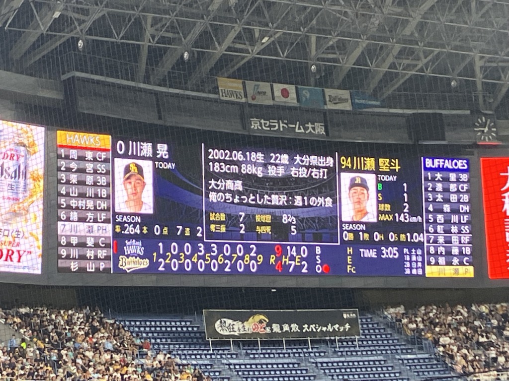 特に熱狂的に応援しているチームはないんですけど、やはり在阪球団ということでいつもオリックスを応援しますが、この日は優勝の瞬間を見たかったので裏切ってソフトバンクを応援しました(笑)