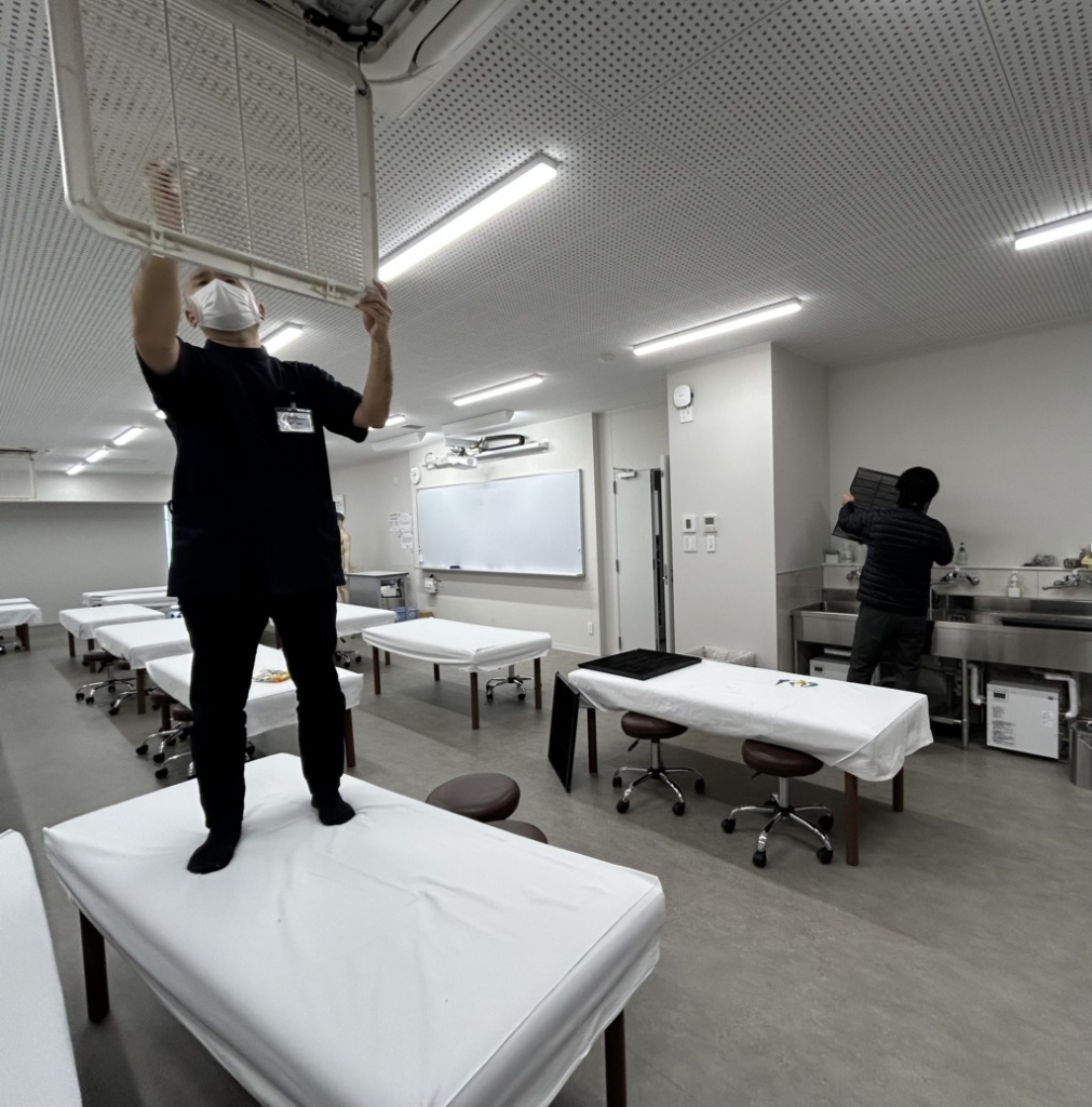 1年未満の使用で、思ったほどの汚れではありませんでしたが、実技室が一番汚れていました。利用頻度も高い部屋ではありますが、お灸の煙も関係している??