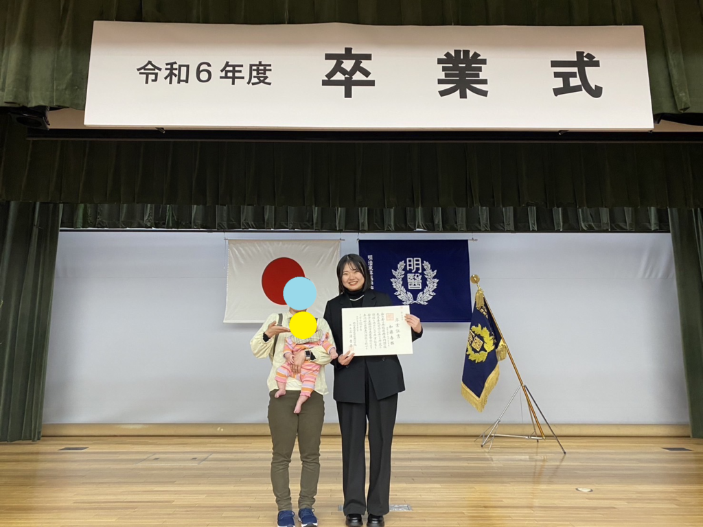 唯一のクラスメイトが可愛い赤ちゃんを連れて卒業式に来てくれました!! (私の代の教員養成科はなんと2人でした笑)