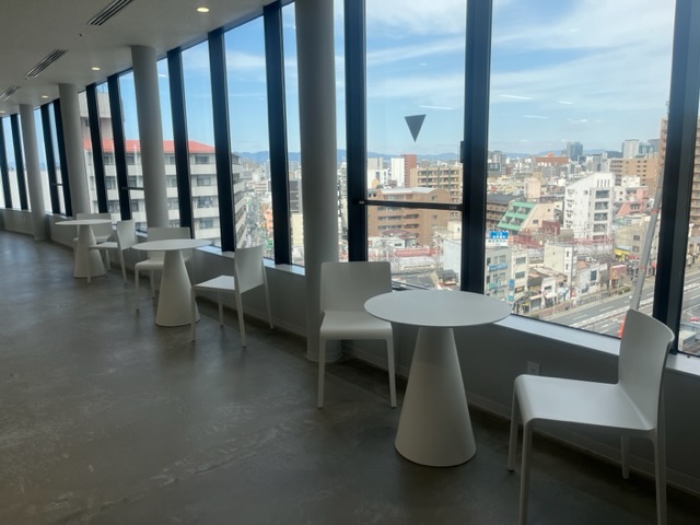 教員室は8階にあり、景色を一望できますし、今ならお隣のジオタワーが大きなクレーンでどんどんできていく様を見ることもできます。