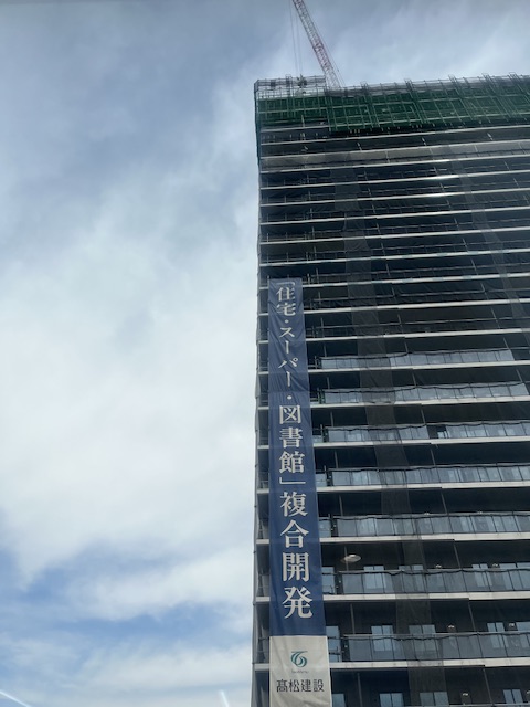 (ジオタワーが完成すれば、この垂れ幕に書いてある「図書館」に履正社の図書館も入る予定です)