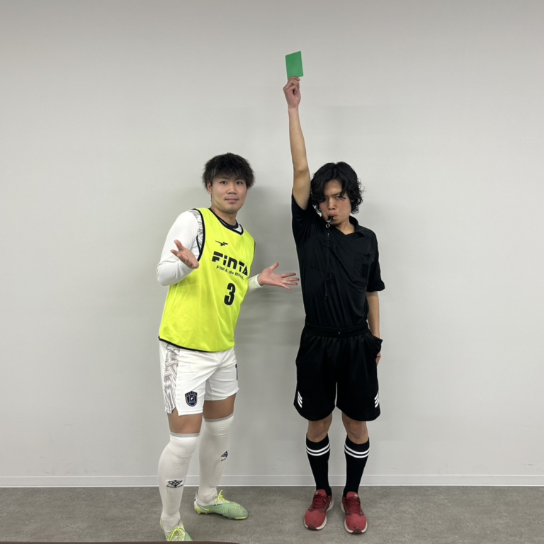 なんとサッカーのユニフォームとレフリー姿で気合満々で来ていました!笑