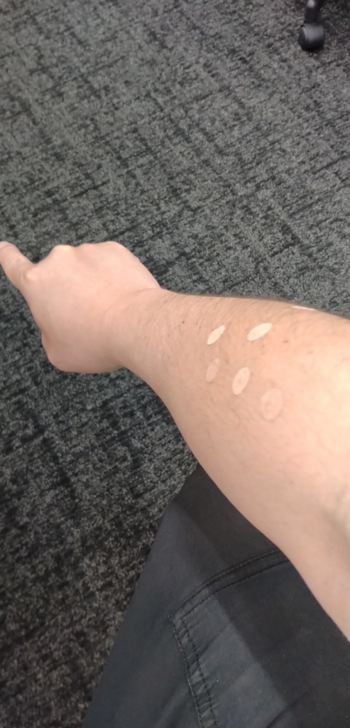 見えにくいかも知れませんが、丸いシールの真ん中に0.9ミリの鍼が