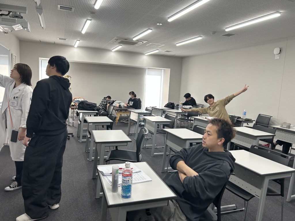実技の練習をしたい2年生のグループ。しかしながら、実技室た他の授業で埋まっていた。。