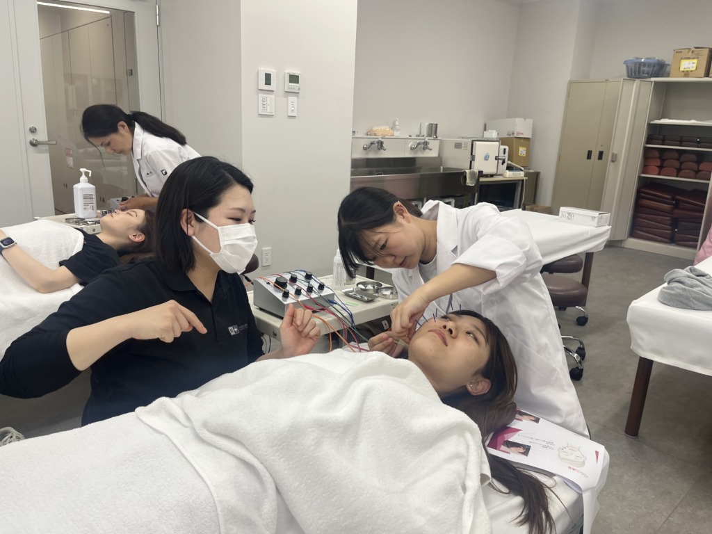 今回の授業はほうれい線や目元のむくみ、たるみについての治療を鍼通電の機械を使って行いました。(年齢を重ねるにつけ、このお題、確かにどうにかしたい…という身を持った実感が大きくなっているのを感じます)