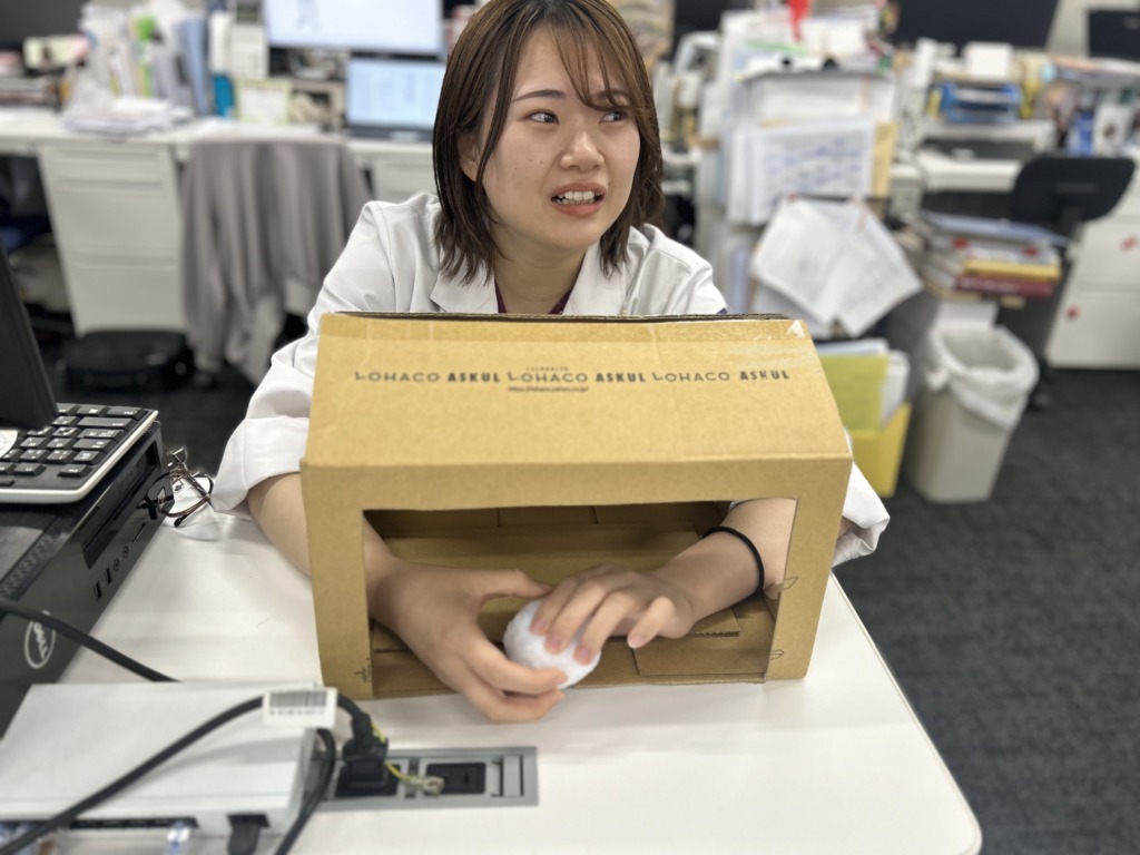桝谷先生が段ボールで工作を始めましたよ。
