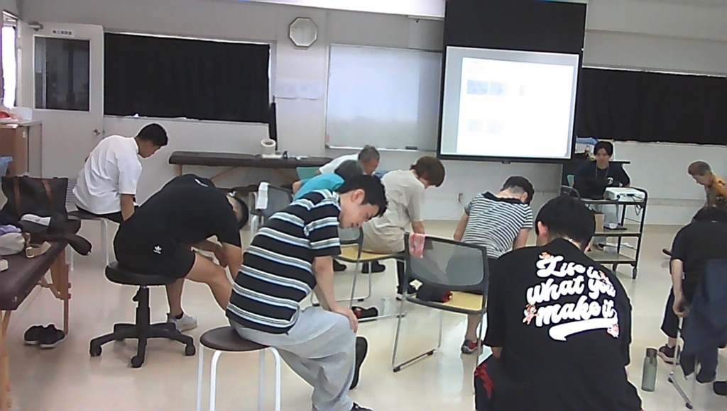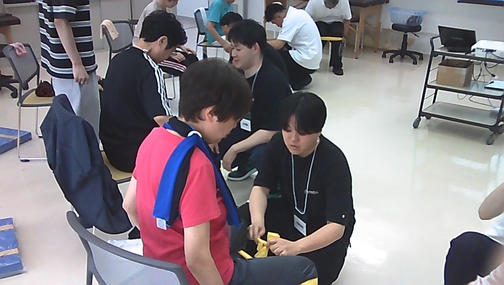 今回は、膝の辺りに巻き、外転運動のトレーニングをしました。