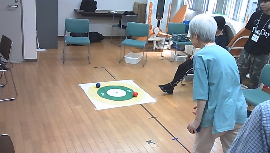 本来もボッチャは、少し広い場所と‘テクニック’が必要ですので、今回は簡易版なのです。