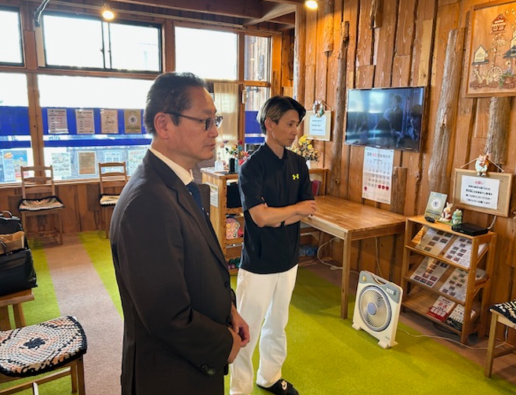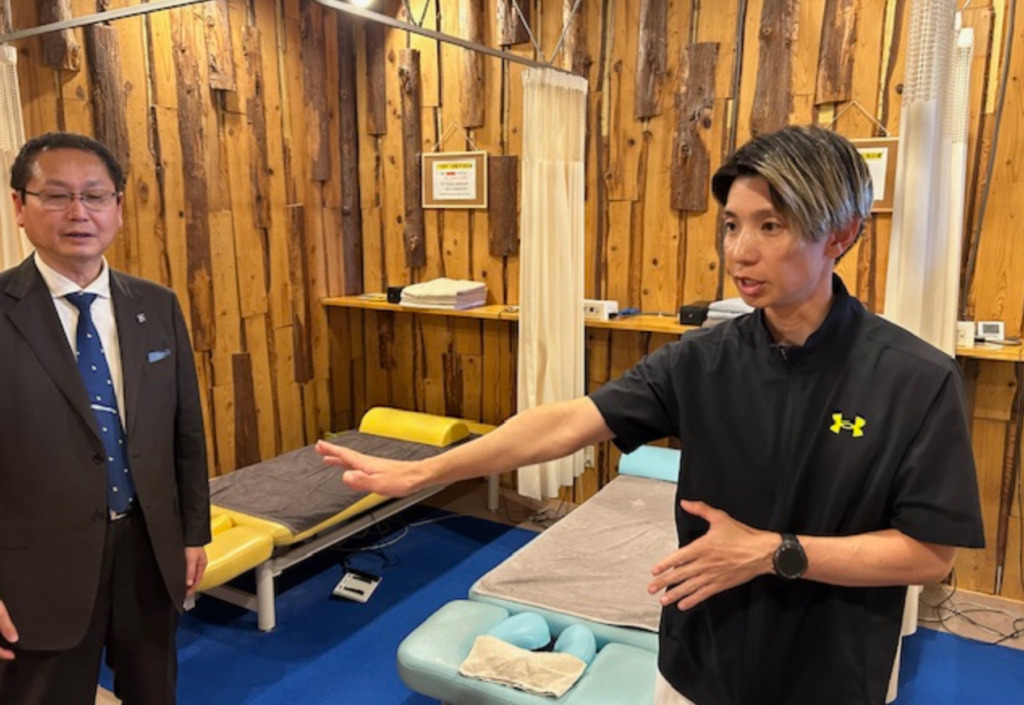 令和7年度、鍼灸学科新規実習施設へ、池尾校長の視察の様子です。