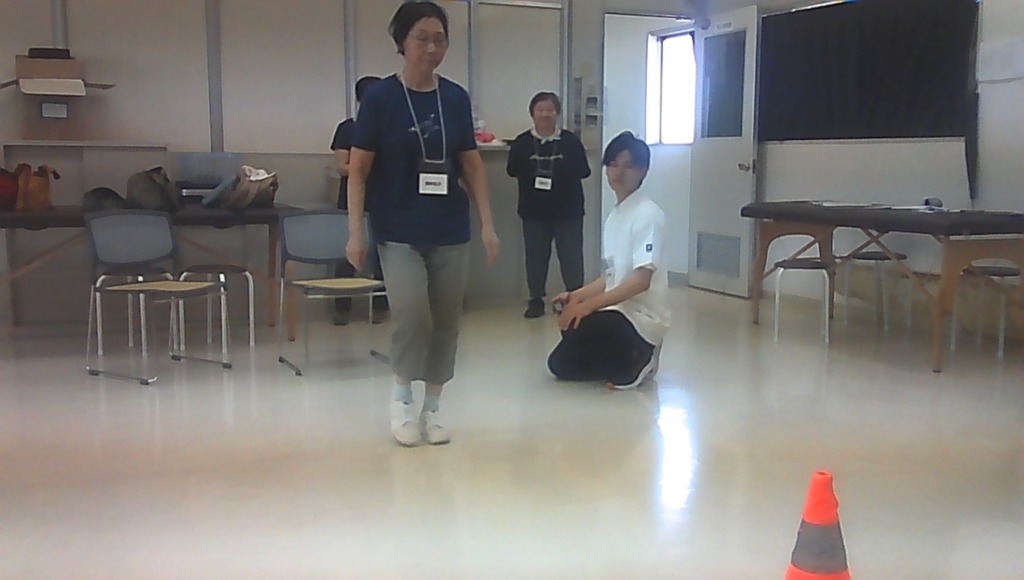 イスから立って、コーンを廻って戻る「TIME UP & GO 3m」