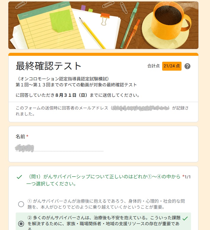「宿題」ではないのですが、8月末が期限の講座の動画視聴と課題の提出がやっと終わりました。