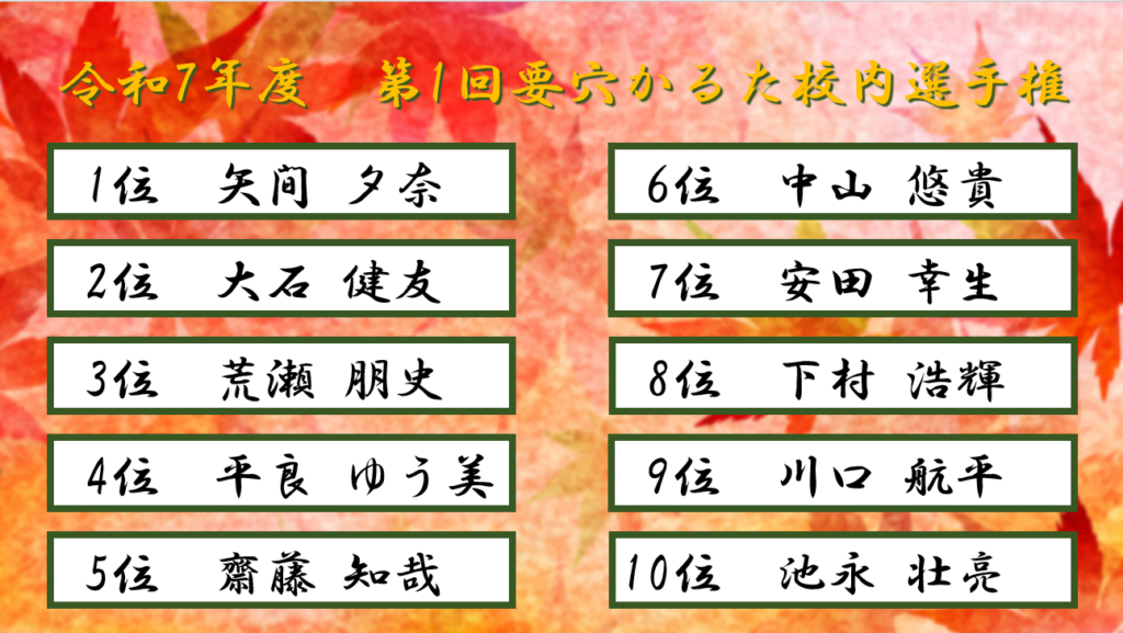 11月23日に開催される要穴カルタ全国大会の出場選手の選考も兼ねて順位を付けました!