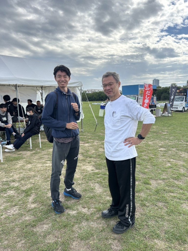 淀川のマラソン実習でこのところ皆勤の、卒業生のいくちゃん。と古田先生。いつも遊びに来てくれてありがとうございます。