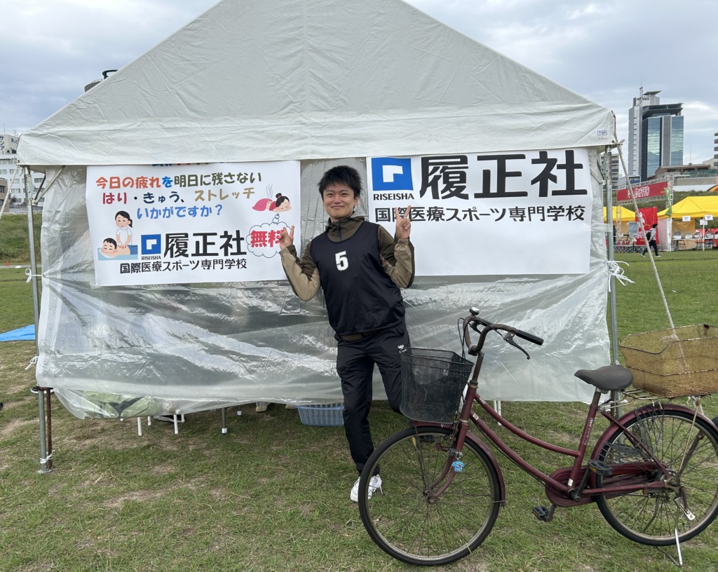 25日、26日は、淀川河川敷で開催されるロケットマラソンでの実習です。治療ブースです。