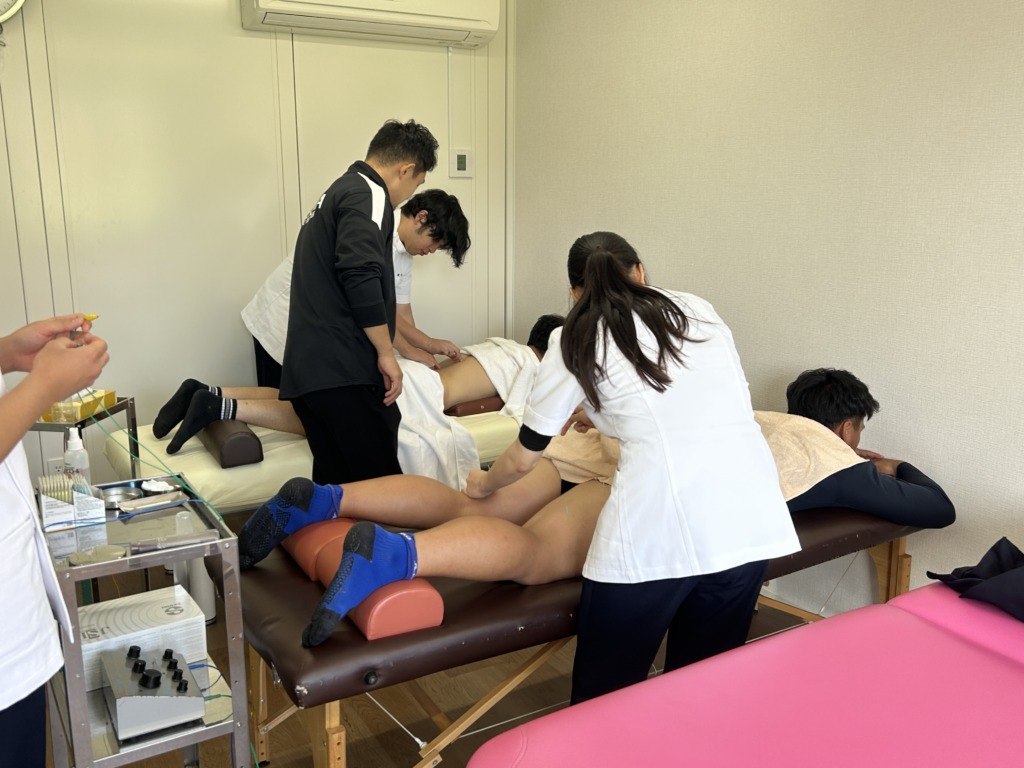 箕面キャンパスでは、土曜日は鍼灸学科の3年生が実習をしています。今日覗いたときはサッカーコースの学生を治療していました(させていただいてました)。