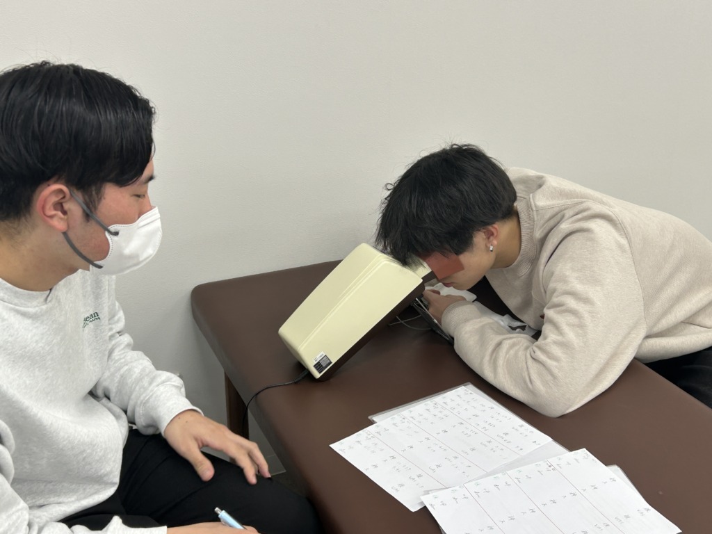 視力測定。1年生も協力してくれてます。(写真の方は2年生でした。。)