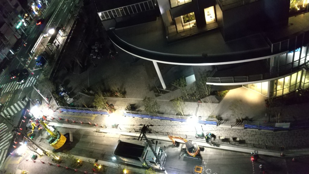 車が少ない夜に道路の工事が進められています。
