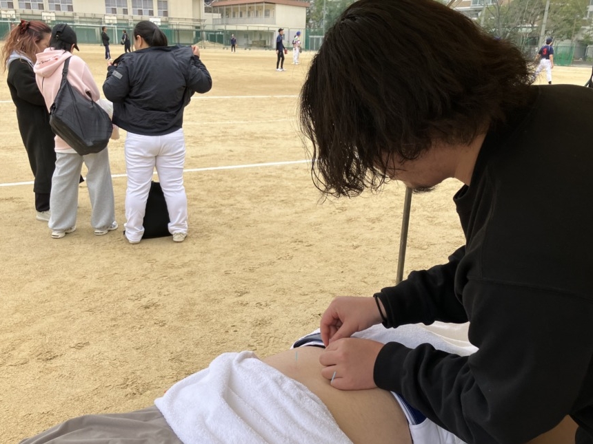 先日、大阪市北区PTAで行われていたソフトボール大会でケアブースを開き実習を行いました!