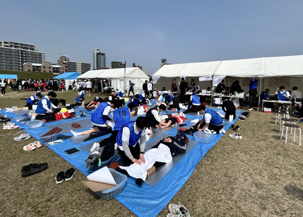 実習の一環で、マラソン大会のケアブースを出展しました。