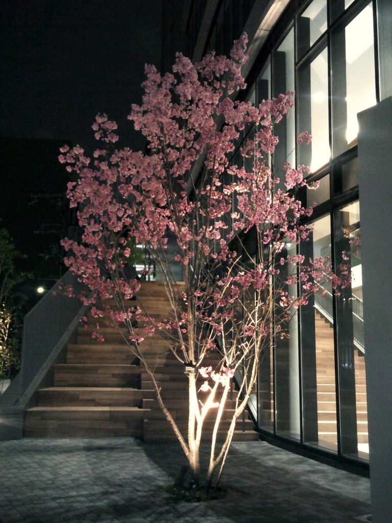 満開になりました。夜、帰り際。3/25ころ。暗くて、・・・。