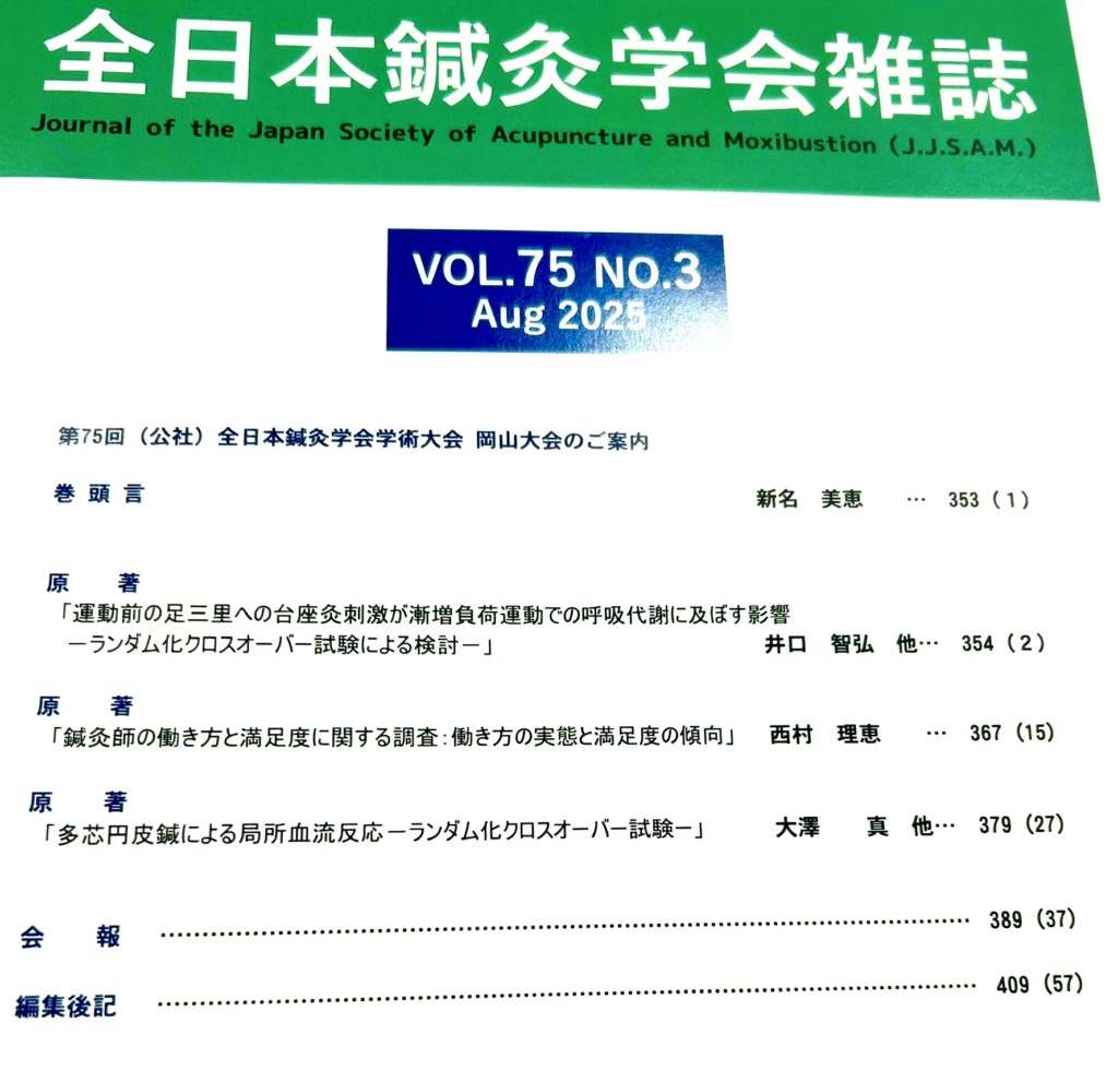 鍼灸学科の先生の論文が雑誌に掲載されましたよ