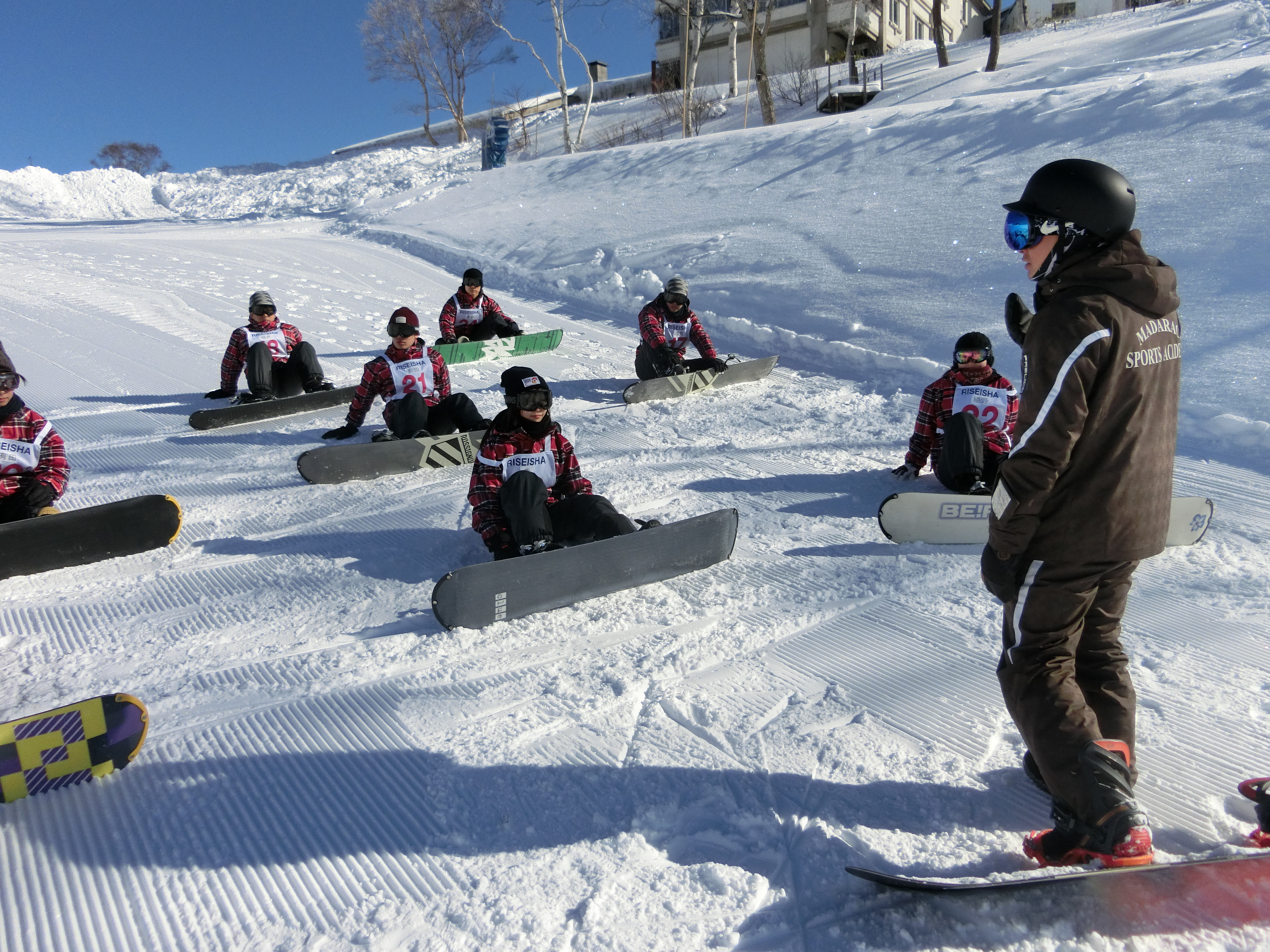 今日は、滑ることに恐怖心を抱く学生や、思うようにボードをコントロールできない学生など
