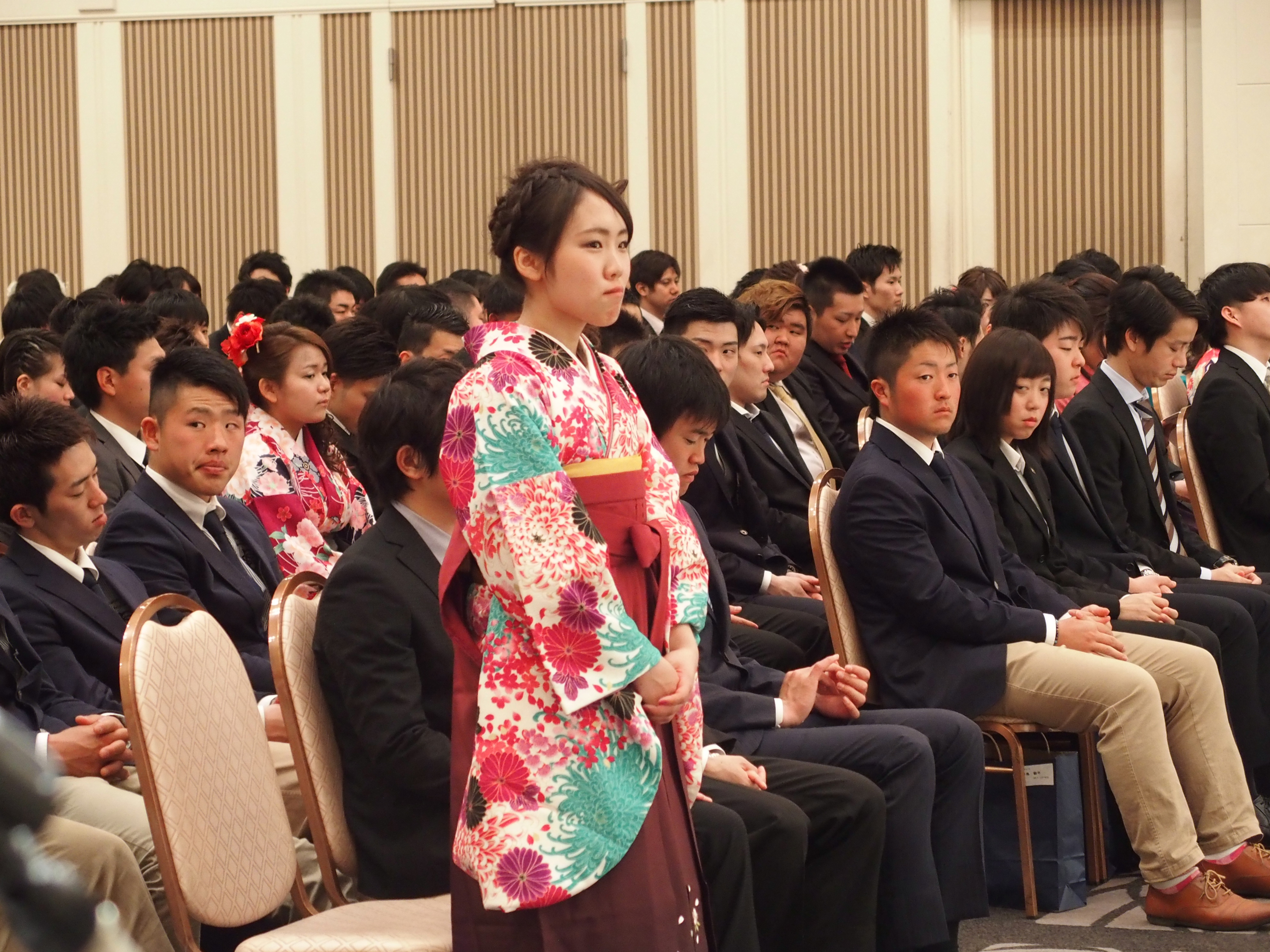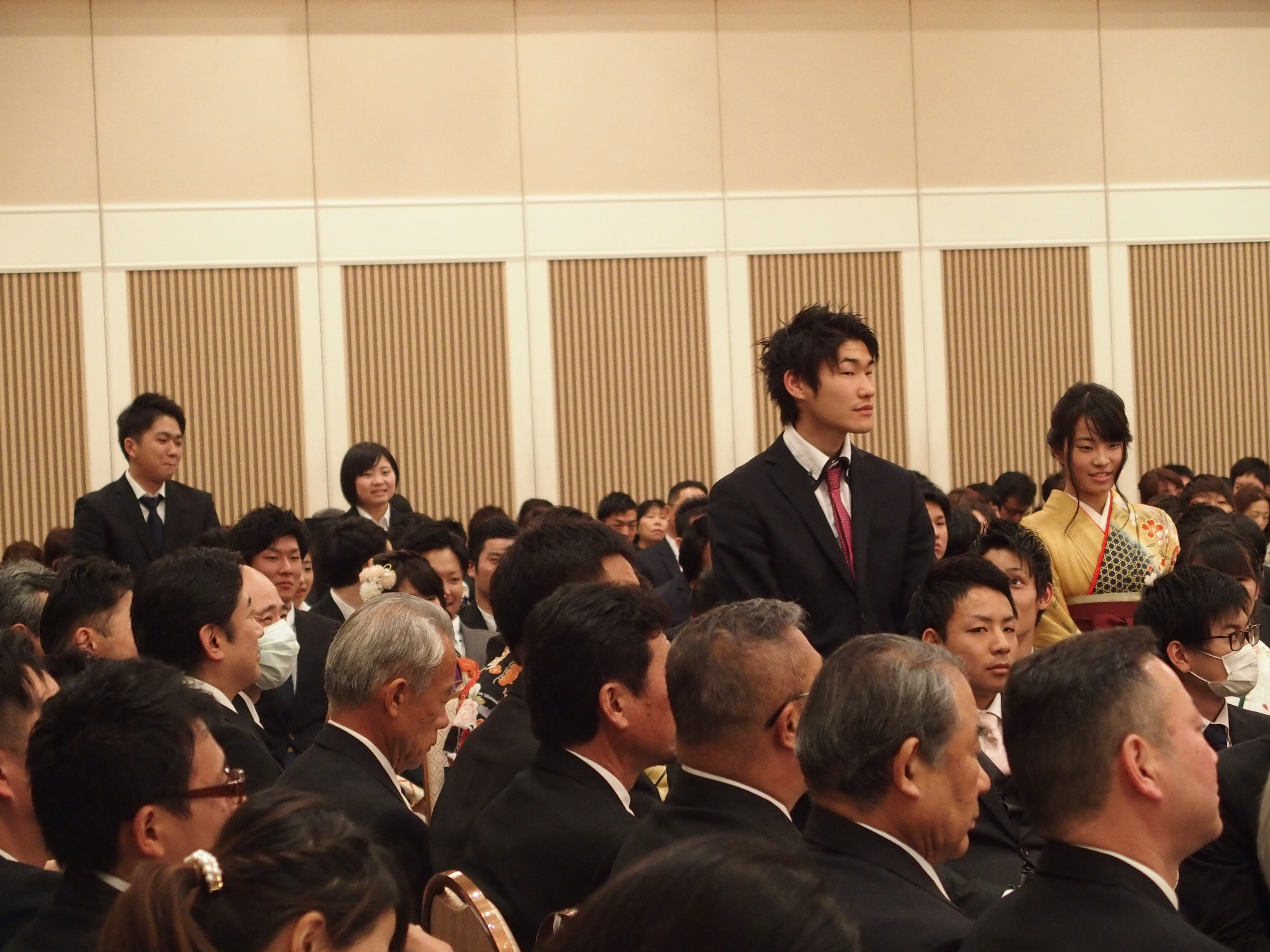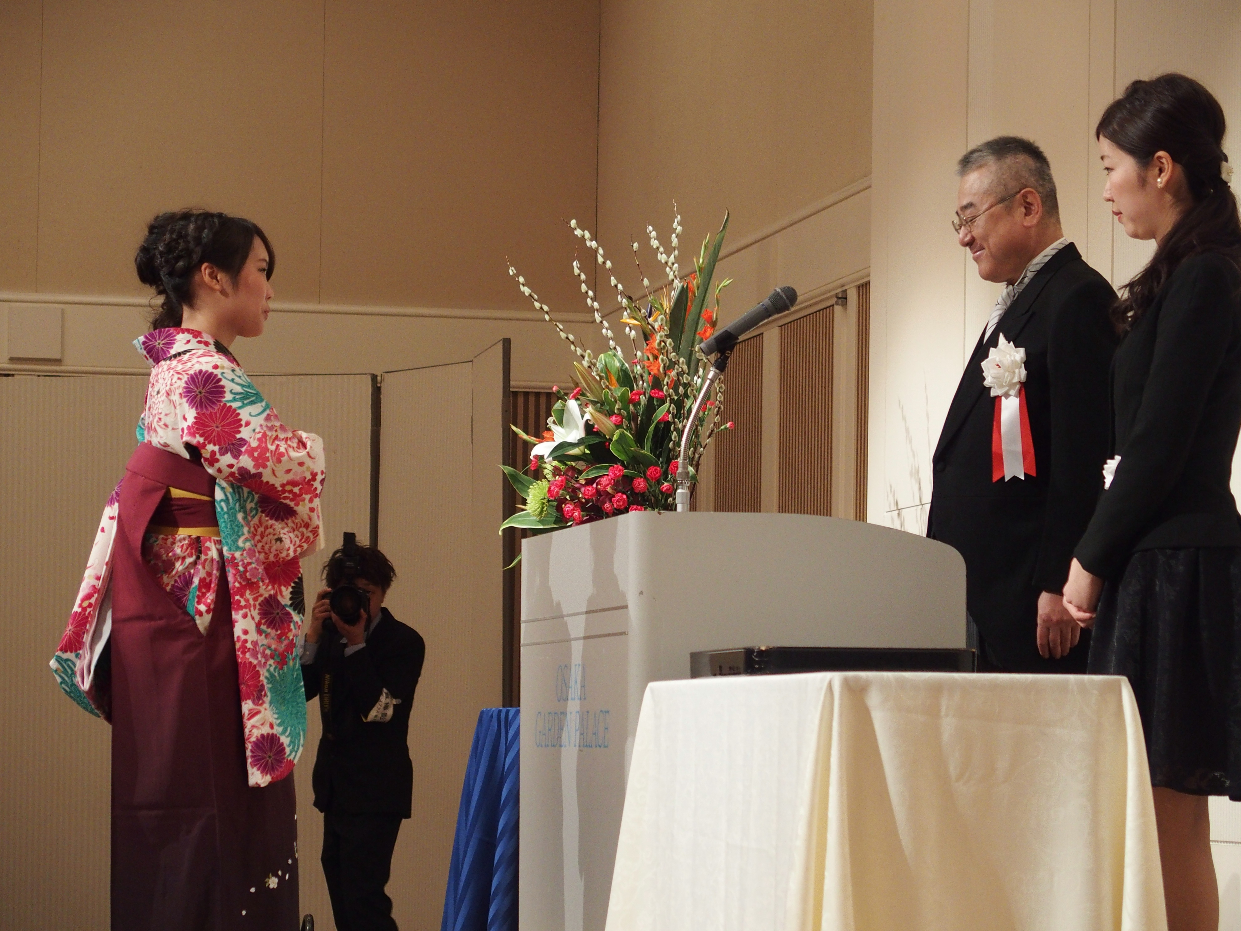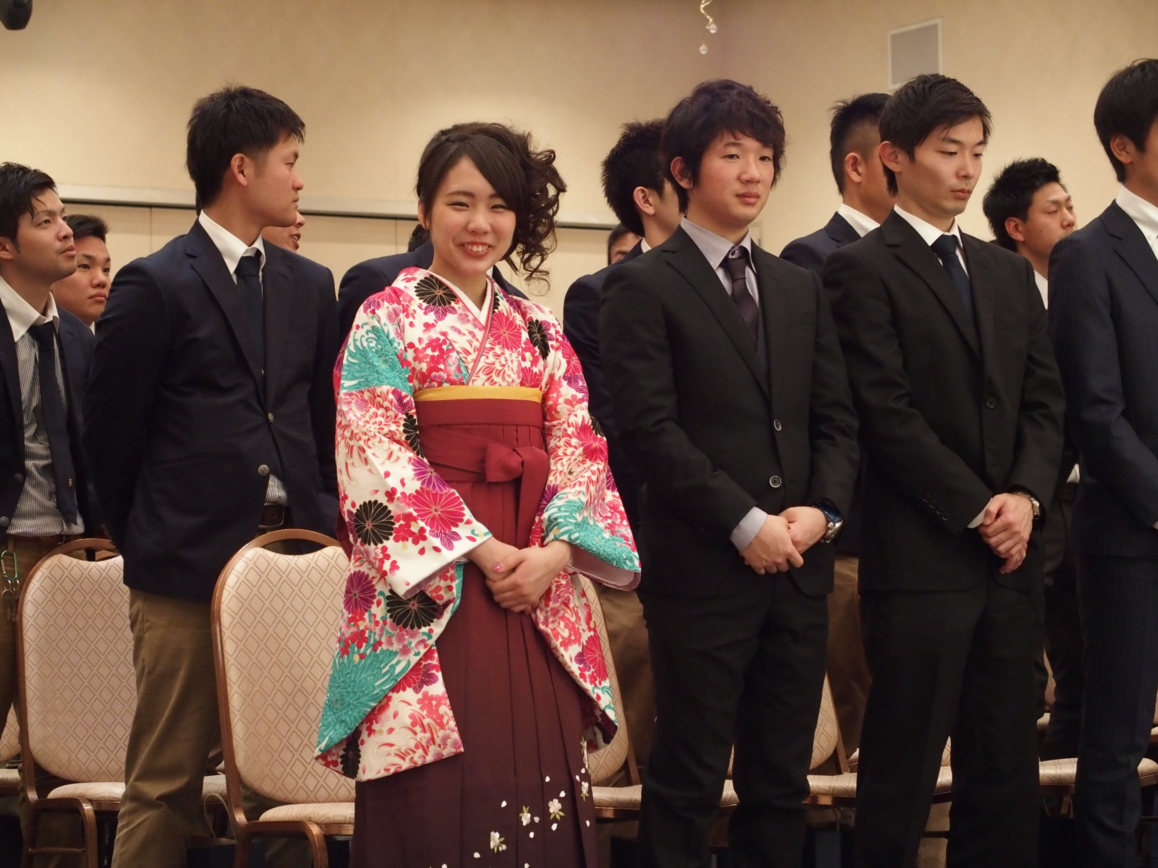 全員の名前が呼ばれ、代表者が受け取ります。