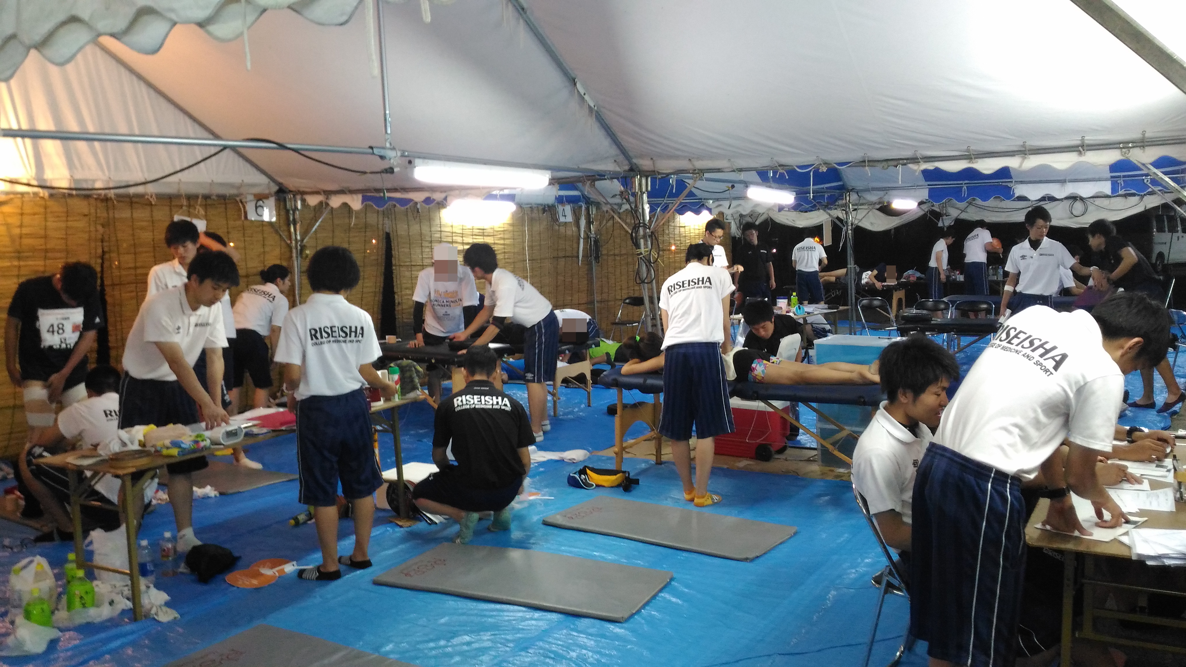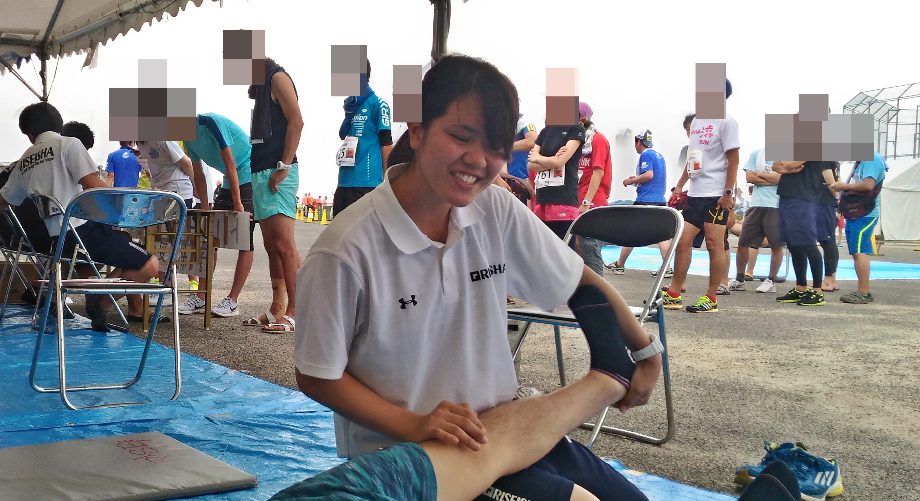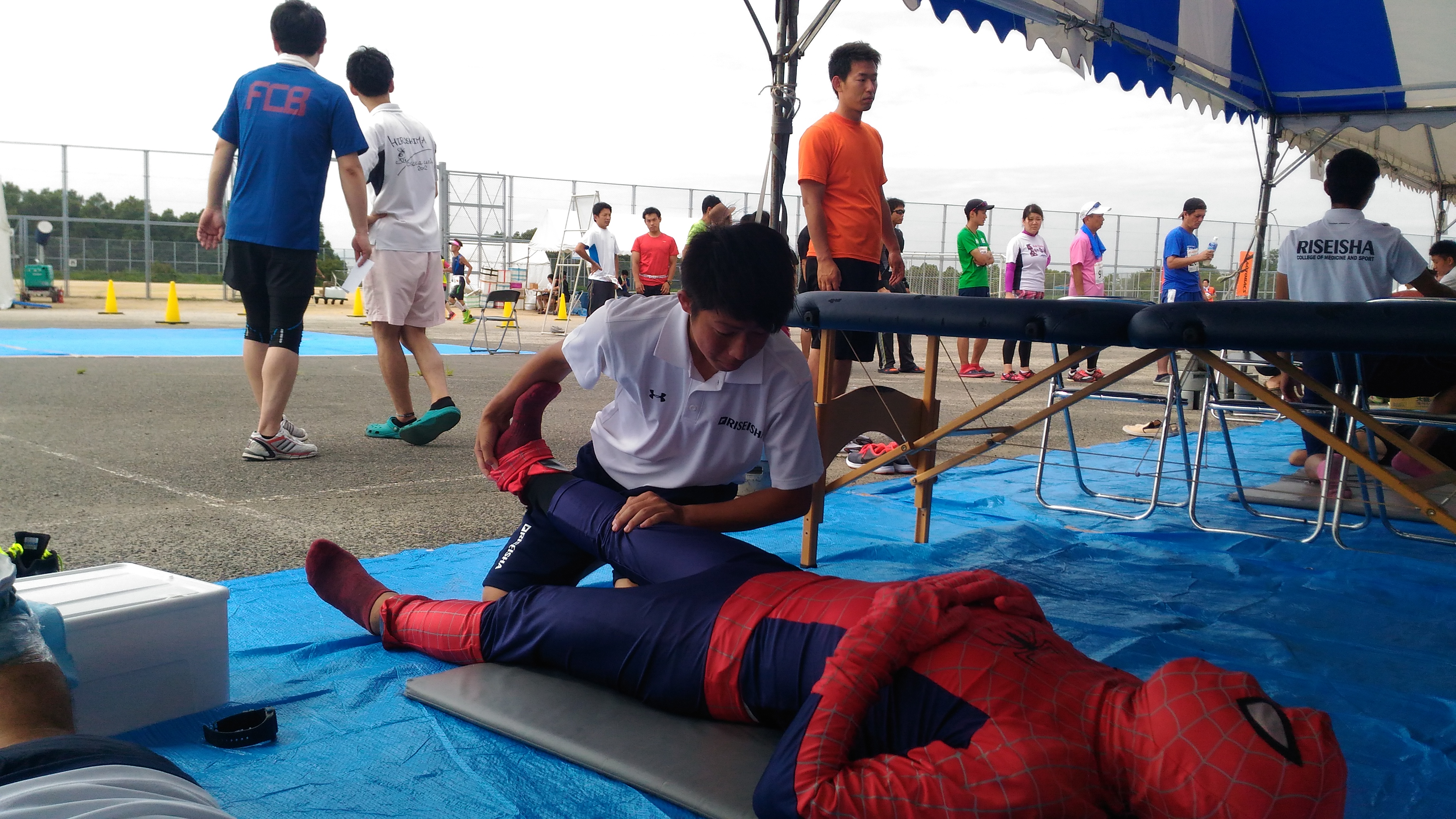 アスレティックトレーナーコースでは毎年『トレーナーブース』を設置し、参加ランナーのストレッチやテーピングなどコンデショニングを担当します![]()