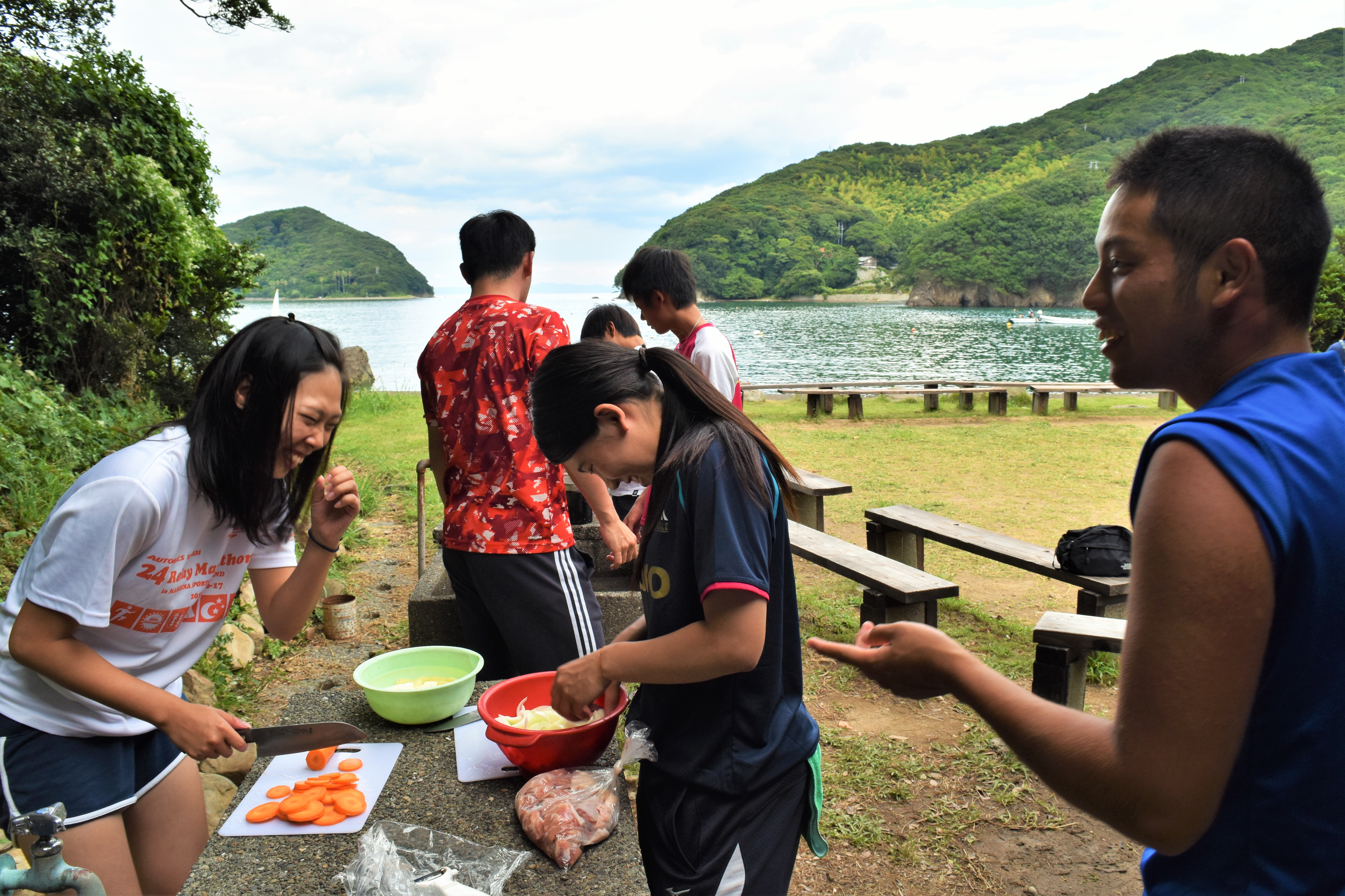 2日目の海洋プログラムは、1・2年生合同です。 JUMBOカヌーに乗り無人島を目指します。 最初は息が合わず、スピードに乗れなかった学生でしたが、 2年生が率先して声を出し、呼吸が合わせられるようになってからは スムーズに進んでいきました。
