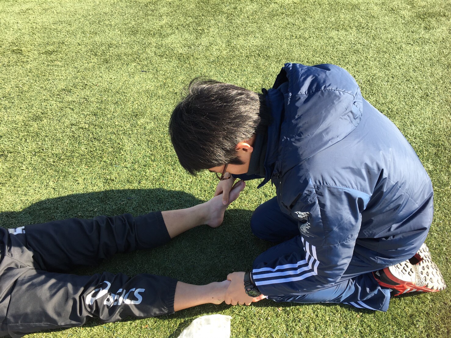 2つ目はケガをした選手に適切な応急手当を行うこと!もちろん自分自身でケアする方法の指導付きです。
