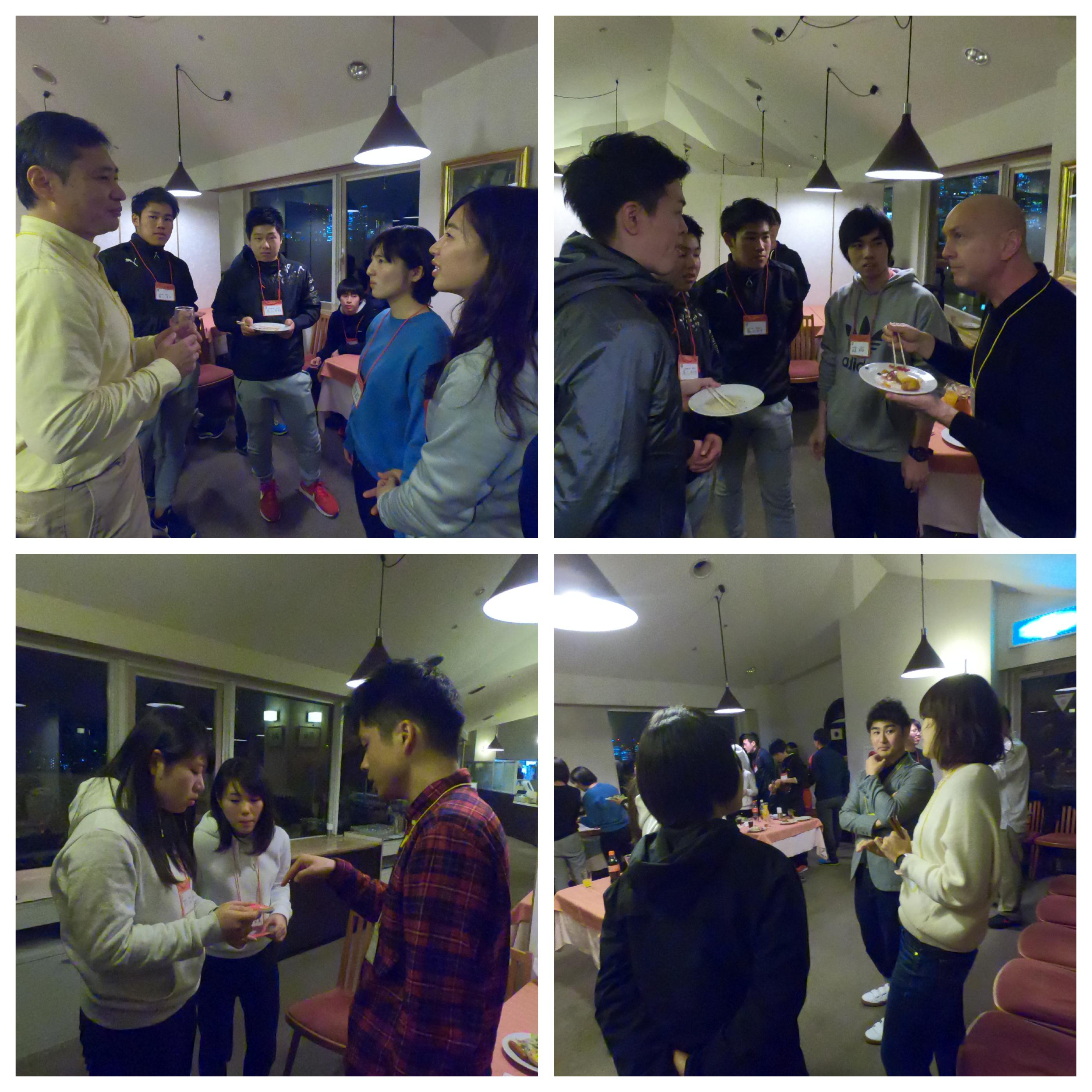 夜に開かれた講師の皆様や企業の方々との懇親会では、東京の夜景を楽しみながらも真剣に自分の将来について