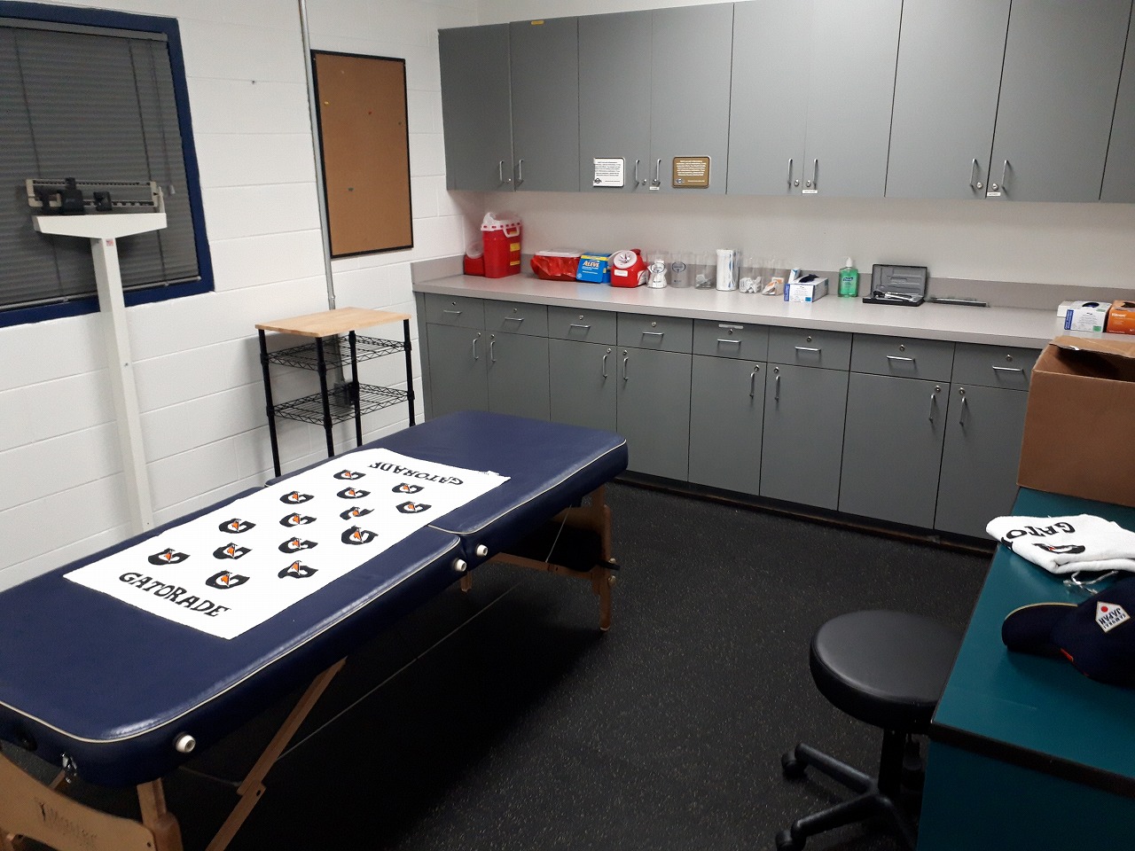 今回の大会では、スタジアム内のトレーナールームを使うことが