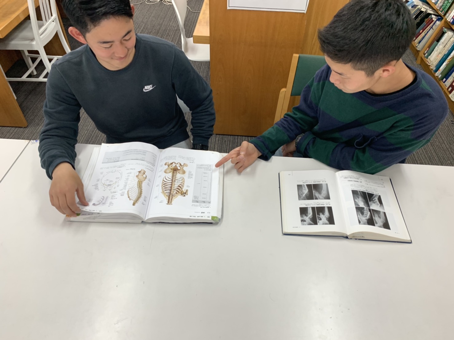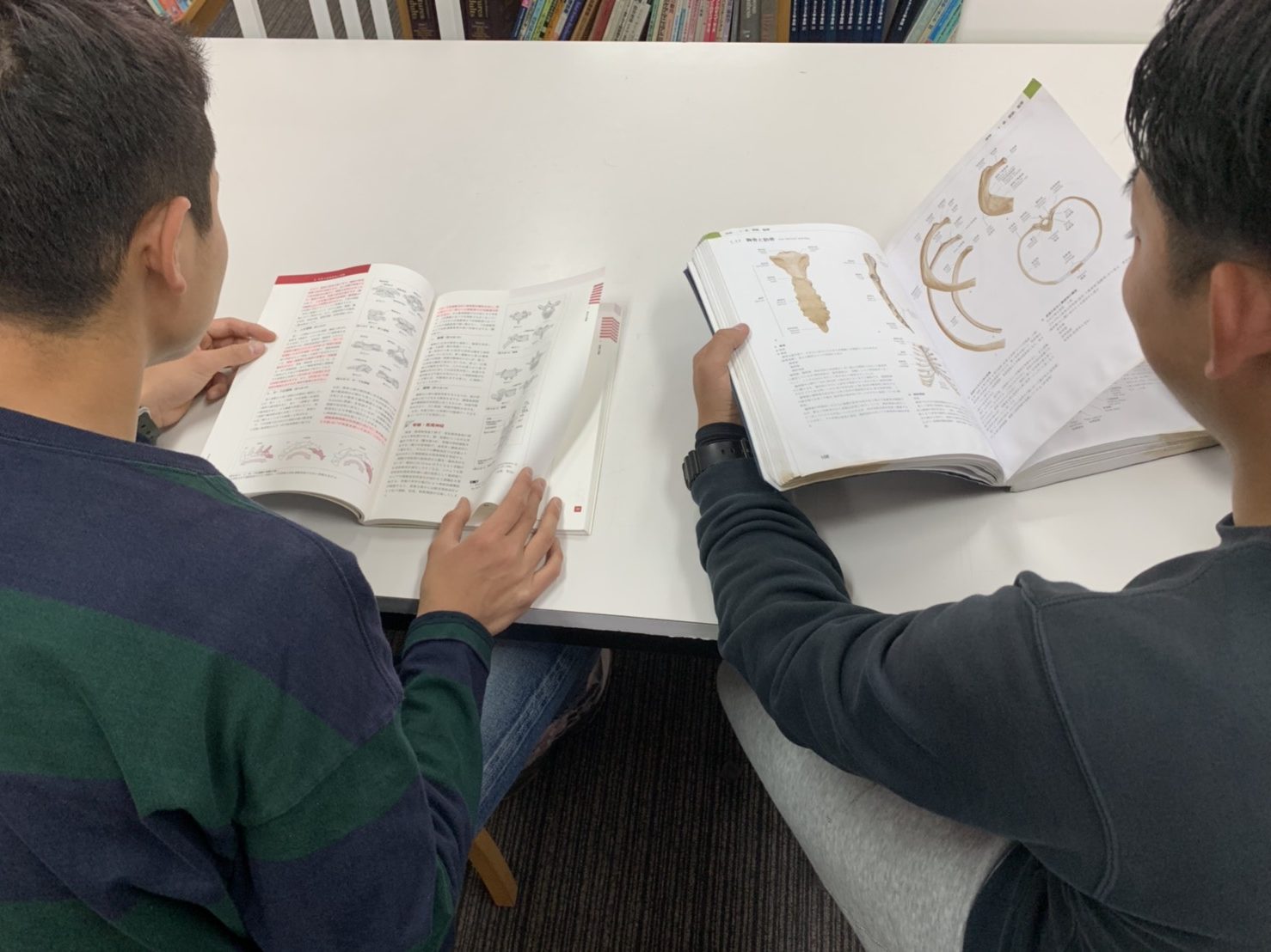 2019.04.15 AT試験に向けての基礎固め 新学期も始まり、気持ちも新たに! 自己紹介する際も、今まで「1年生」と名乗っていた学生も 2年生となりなんだか顔つきもしっかりしてきたような気がします。 そんな風に感じていると、コツコツ勉強する「2年生」の姿を見つけました。 覗きこんでみると解剖の勉強中。2年生に進級しても基礎勉強は欠かしません。 1人で勉強するよりも、教え合いながら知識を定着させていきます。 AT試験の本番まではあと209日! 気持ちに余裕があるときこそしっかり土台作りをしていきましょう! 前の記事 記事一覧 次の記事