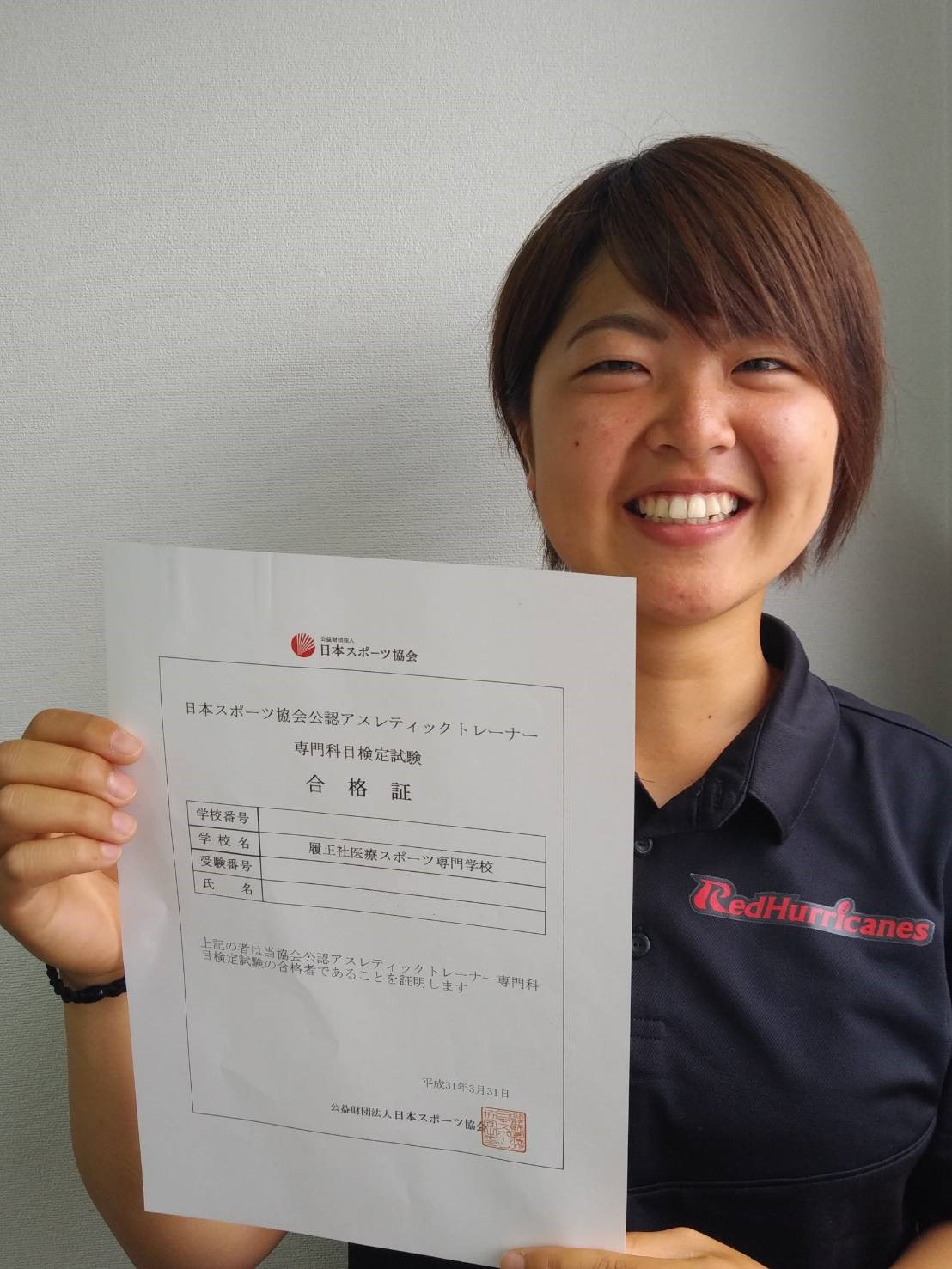 卒業し、現役でアスレティックトレーナーの資格試験に合格した