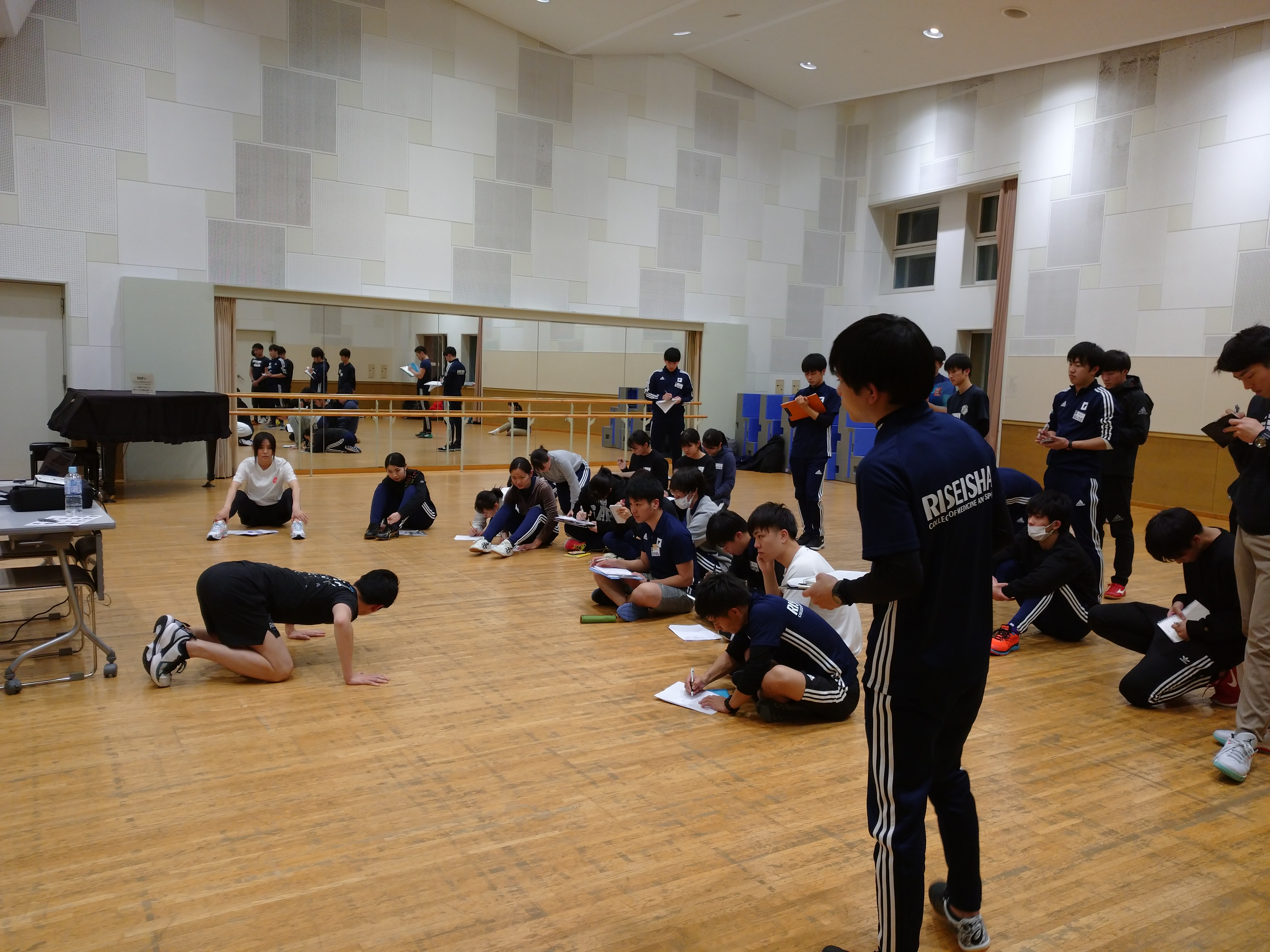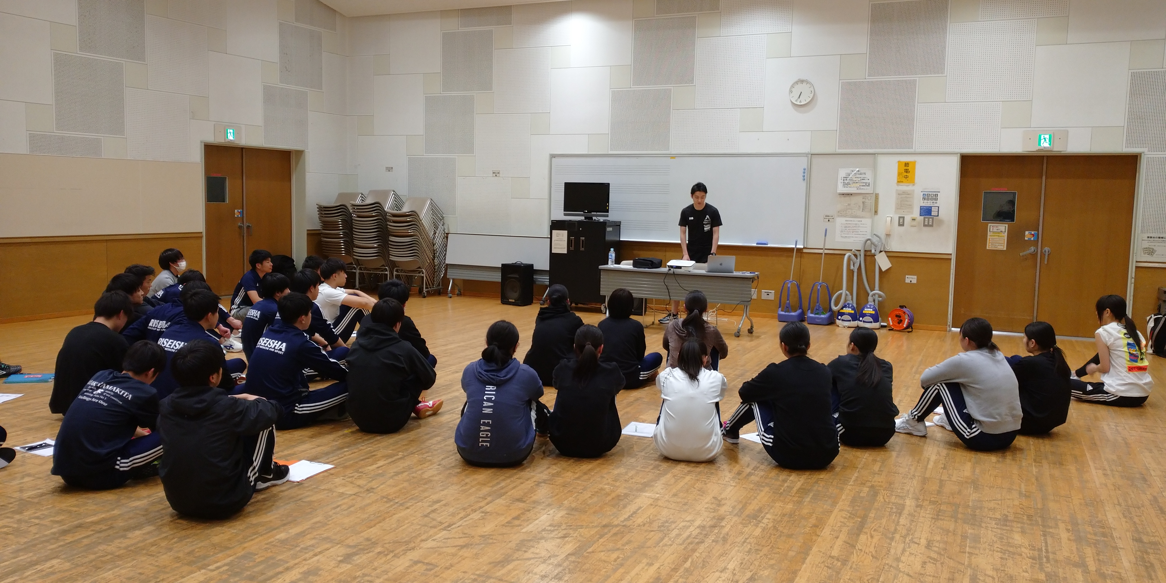 初日はR-body project の大浦拓也様にお越しいただき、コンディショニングの中でもフィジカルコンディショニングについて講義と実技を交えて行っていただきました。