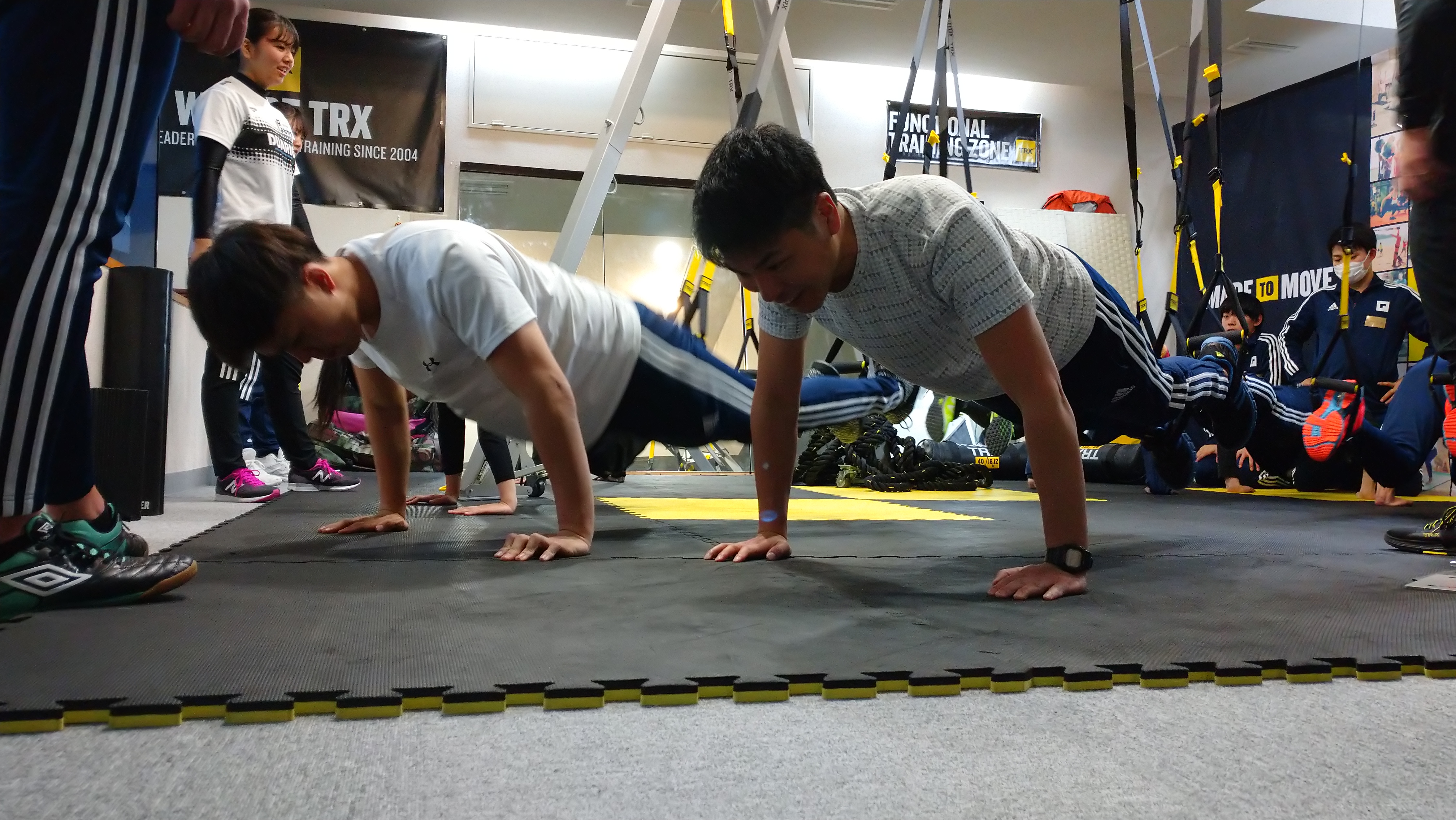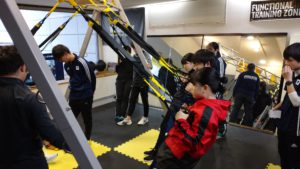 インストラクターの長嶺様からTRXの説明と様々なトレーニングを