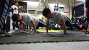 写真のようにサスペンション一本で全身のトレーニングをすることが可能です。
