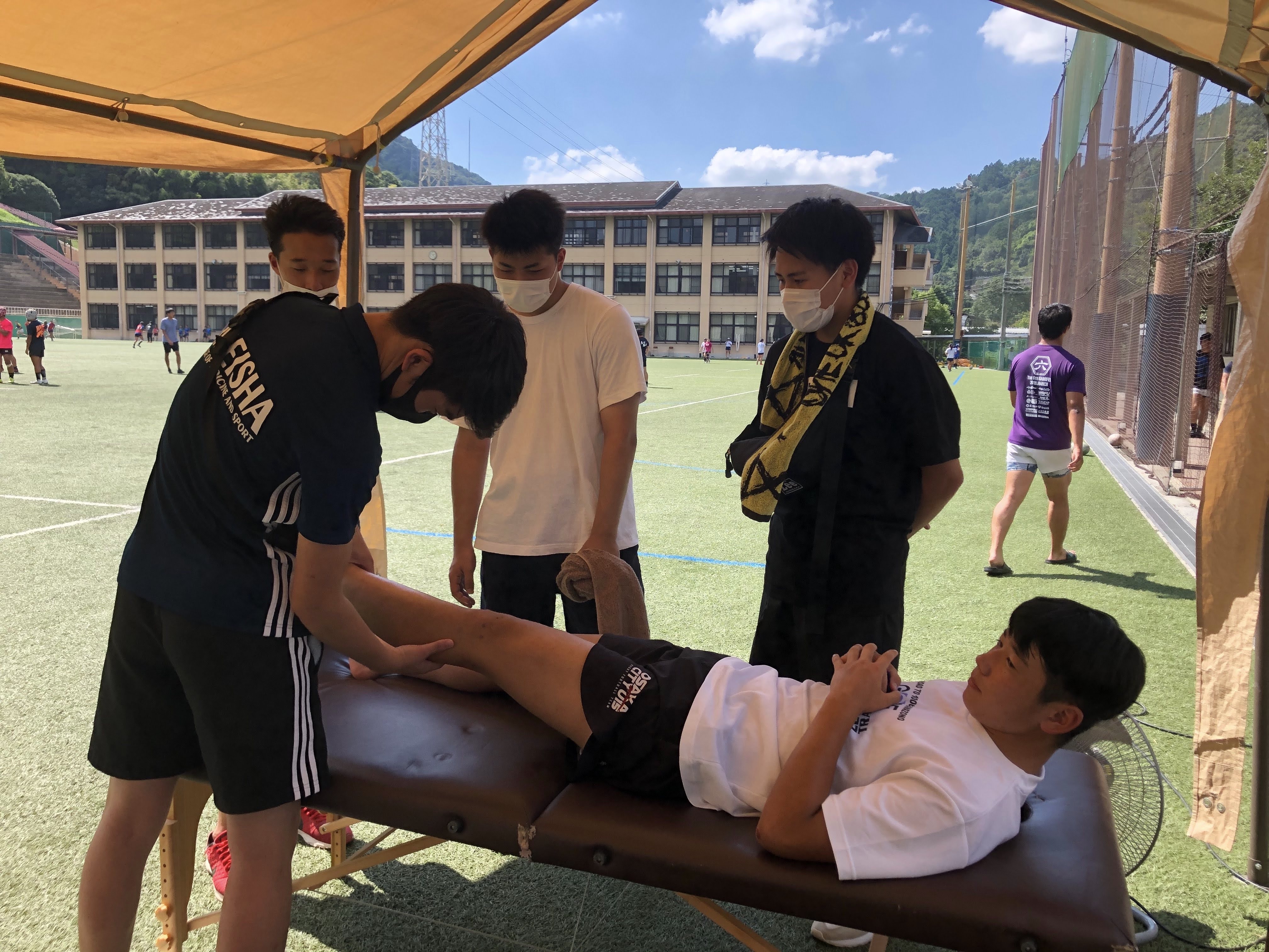 2020.08.21 夏休み恒例!現場実習 夏休みも残りわずかとなりました。 例年であれば、夏休み期間に合宿実習が行われ、 全国各地へ練習や試合の帯同をしております。 今年は宿泊を伴わないようにしたり、 実習中もマスクの着用や消毒などの予防をしたうえで実施しております。 合宿実習ではより迅速で臨機応変な対応が求められたり、 普段の実習にはない様々なことを経験することができます。 選手を実際に評価することで、 新たな課題が見つかったり、 これまでの内容をより理解することができます。 この夏の経験を今後に活かしていただきたいと思います。 前の記事 記事一覧 次の記事