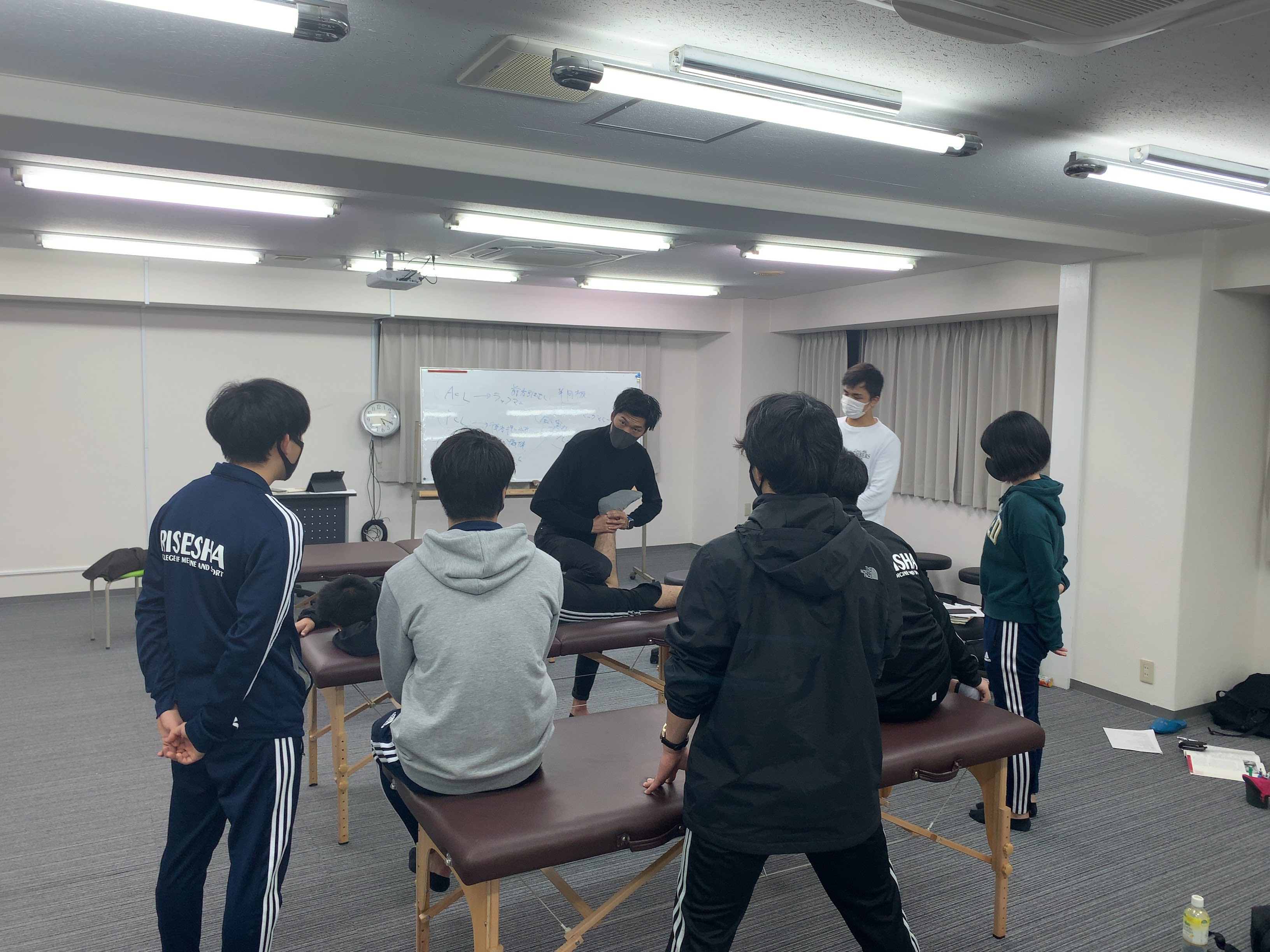 2020.12.03 超実践型教育 アスレティックトレーナーコース現場実習の特徴として少人数制があります。 少人数制により学生一人一人が自ら考え実践できる環境となっております。 そんな現場実習の様子を本日もご紹介いたします! (検査法について指導されているところです。) (学生同士で意見を出し合いながら実践しています。) 前の記事 記事一覧 次の記事
